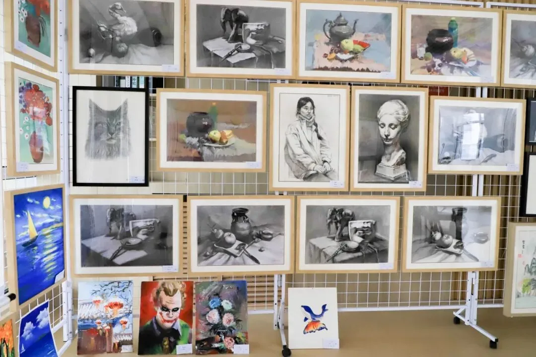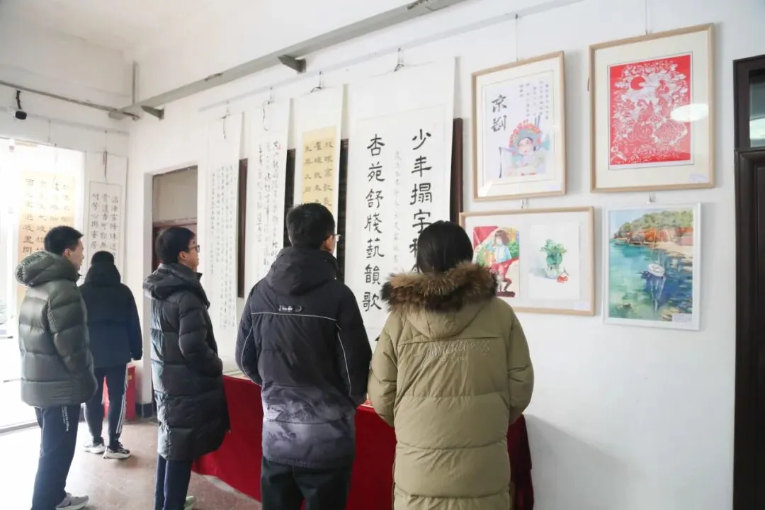 本届展览以“科创向未来 艺蕴谱华章”为主题,共汇集高一、高二年级推选的绘画、书法、摄影、设计等作品300余件。