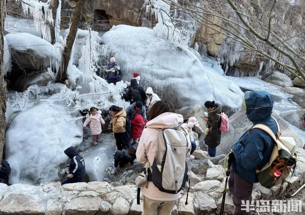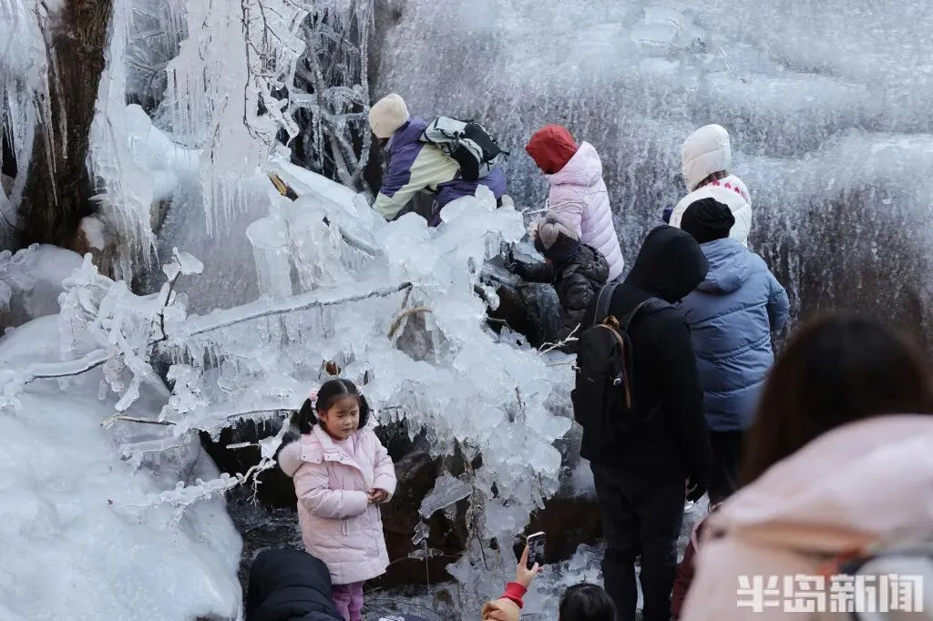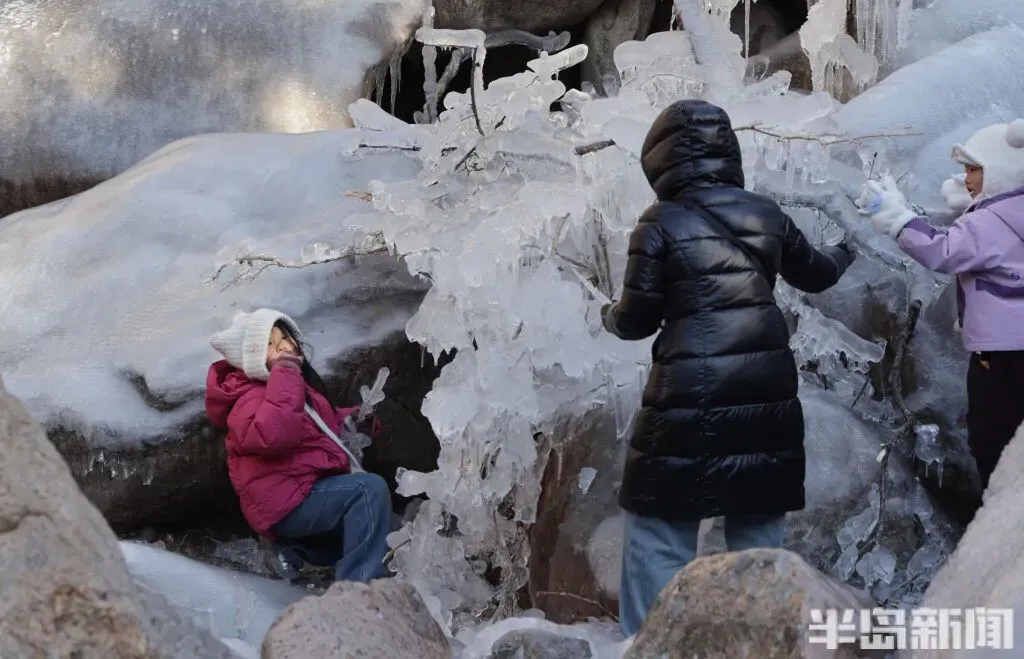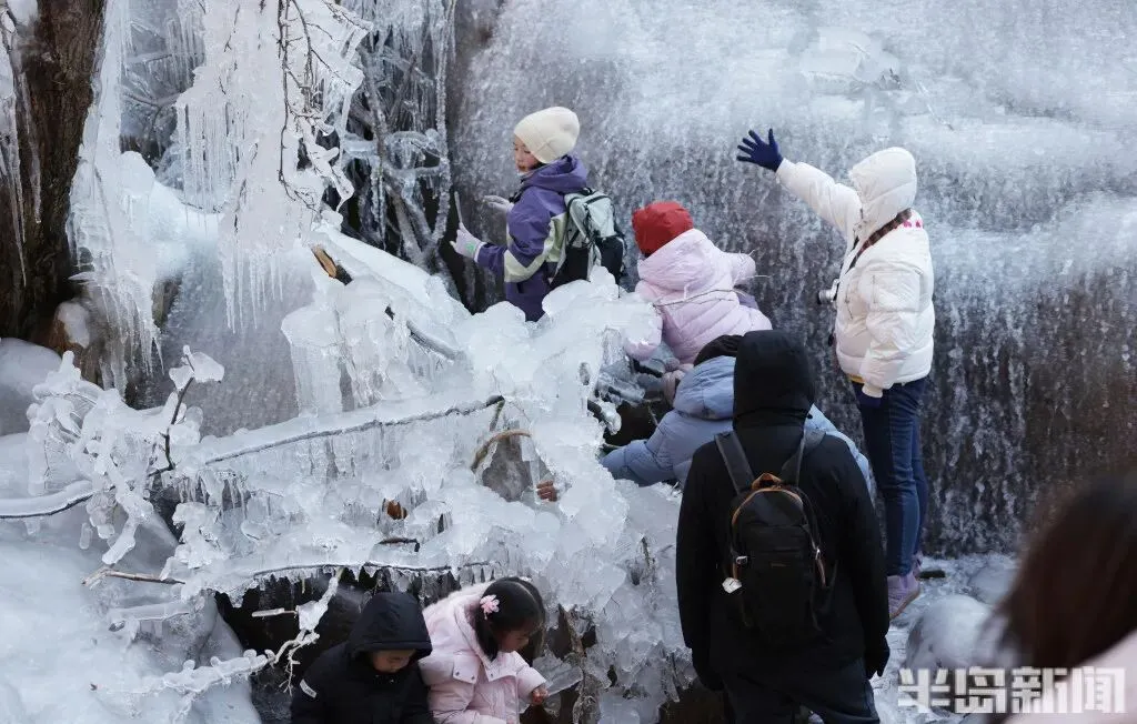 作为青岛冬季极具代表性的网红打卡地,北九水的冰雪景观每年都能点燃市民游客的出游热情。即便寒意袭人,大家依旧兴致高昂,沉浸式穿梭在银装素裹的山谷间,亲身感受 “冰雪奇缘” 般的梦幻意境,领略寒冬独有的视觉震撼。