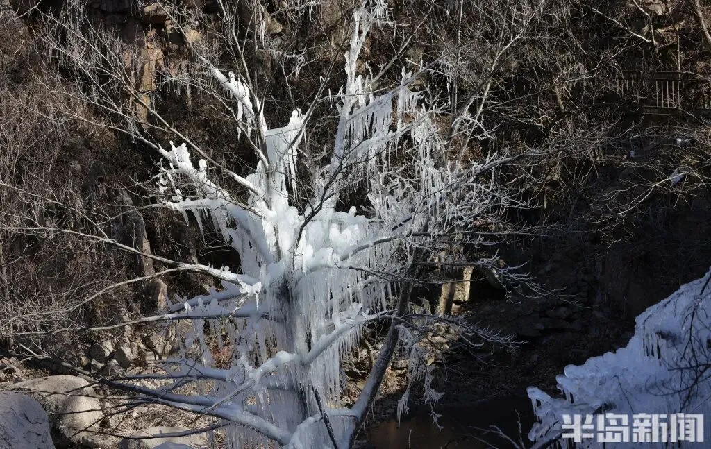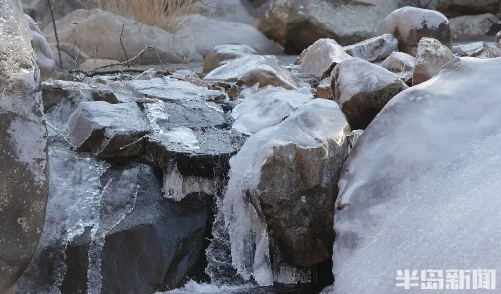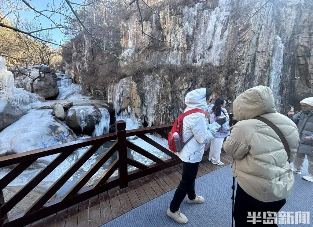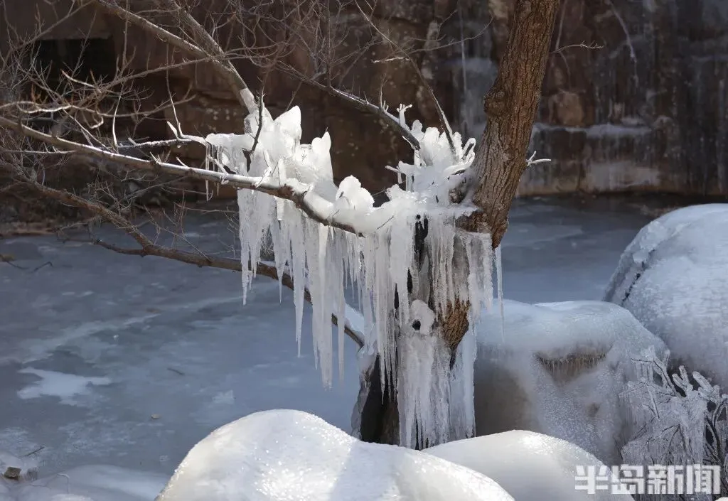 1 月 11 日,青岛崂山北九水景区的冬日限定美景如期而至——九水冰瀑奇观正式亮相,晶莹剔透的冰雪世界吸引了大批市民游客慕名前来。潭水凝结成镜,冰挂与雾凇缀满枝头,细碎的冰晶在阳光下折射出璀璨光泽,宛如大自然精心雕琢的冰雪艺术品,引得游人纷纷驻足,用镜头定格这份冬日浪漫。