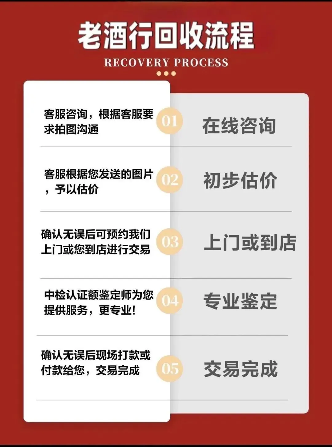 1. 专业鉴定:配备国家级品酒师、药材鉴别师2. 价格透明:参照当日市场行情报价3. 上门服务:青岛市内免费上门取货4. 现款结算:验货后立即转账