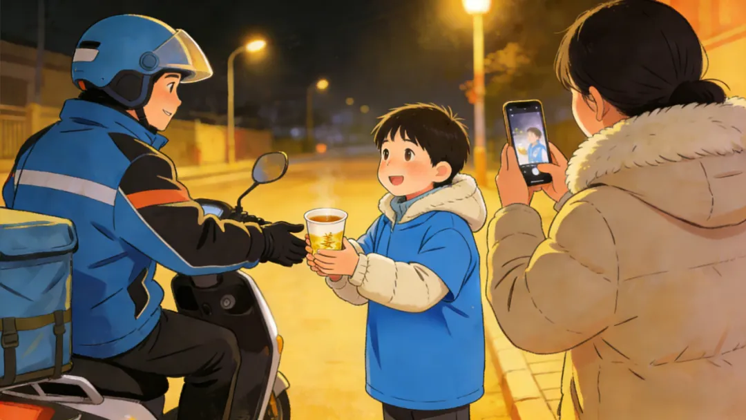 青岛市市北区蚂蚁力量志愿服务中心的少年们,又一次准时集结。他们中,有攥着保温杯、眼神里满是新奇的初体验者,也有动作娴熟、已是第四年参与的“老志愿”。递出姜茶时的认真,收到道谢时的腼腆,寒风中冻红的鼻尖,还有藏不住笑意的脸庞——这些珍贵的瞬间,都被随行的爸爸妈妈们用镜头定格。