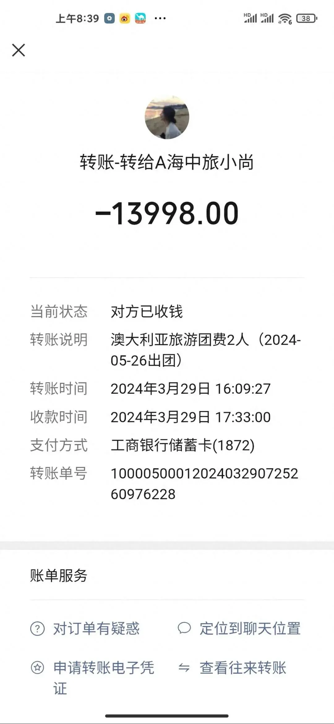 市民赵女士分4笔共计给该旅行社转账18998元