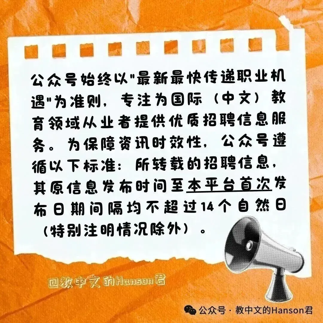 不提供咨询与服务:本公众号仅作为信息传播媒介,不接收、收集任何应聘者的个人信息,亦无法提供关于职位申请、签证办理、合法居留等相关问题的答复或服务。对于中国大陆以外岗位所涉及的签证与工作许可问题,请直接向招聘方咨询。