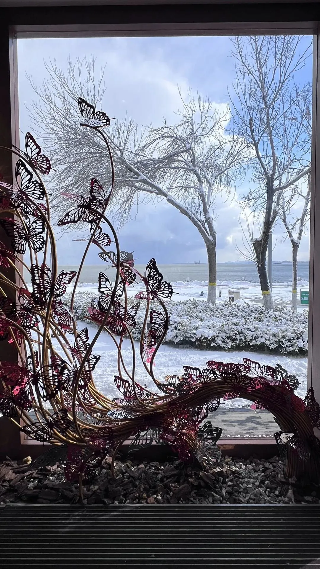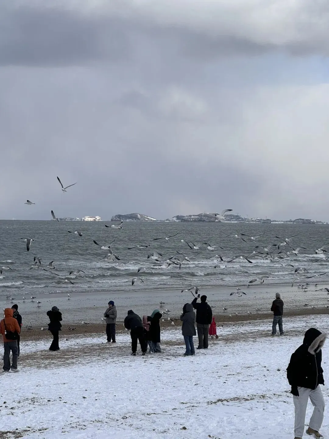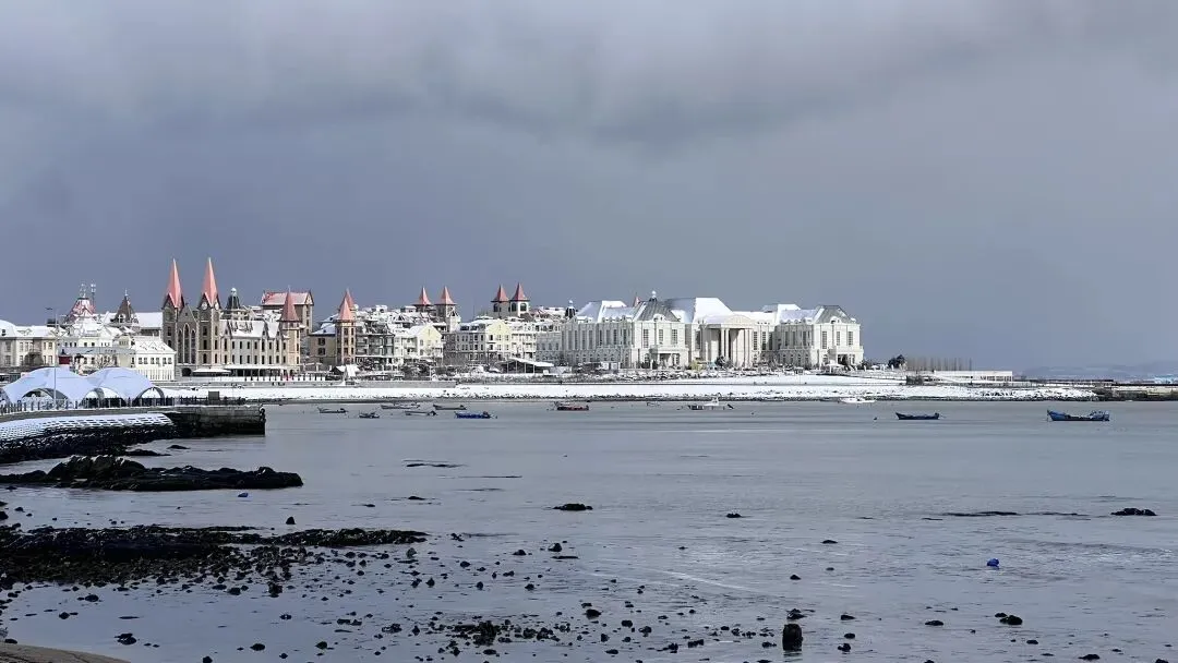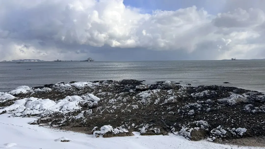 车载音乐播着四喜丸子温暖又低沉、伤感又深情的《秋风》,外面凛冽的寒风吹着路边杨树枯叶🍂上的积雪飘洒着穿过马路,行人缩着脖子捂紧棉衣,不让寒风灌进衣领,却不时拿出手机拍着雪景。乌云下,远处渔人码头尖尖的红屋顶格外耀眼。