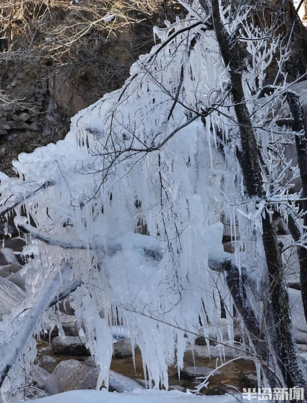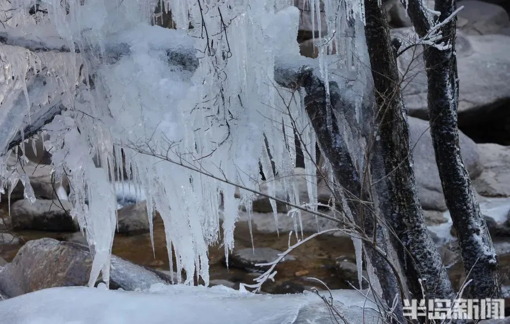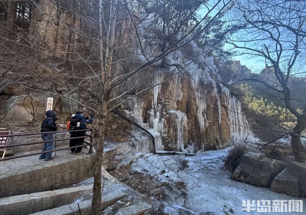 1 月 11 日,青岛崂山北九水景区的冬日限定美景如期而至——九水冰瀑奇观正式亮相,晶莹剔透的冰雪世界吸引了大批市民游客慕名前来。潭水凝结成镜,冰挂与雾凇缀满枝头,细碎的冰晶在阳光下折射出璀璨光泽,宛如大自然精心雕琢的冰雪艺术品,引得游人纷纷驻足,用镜头定格这份冬日浪漫。