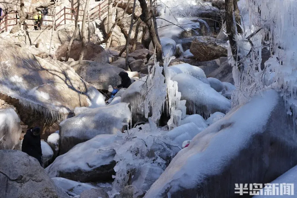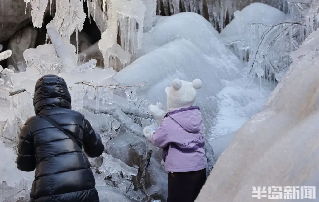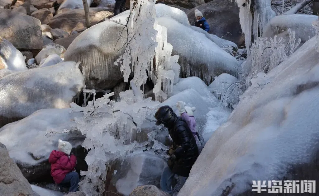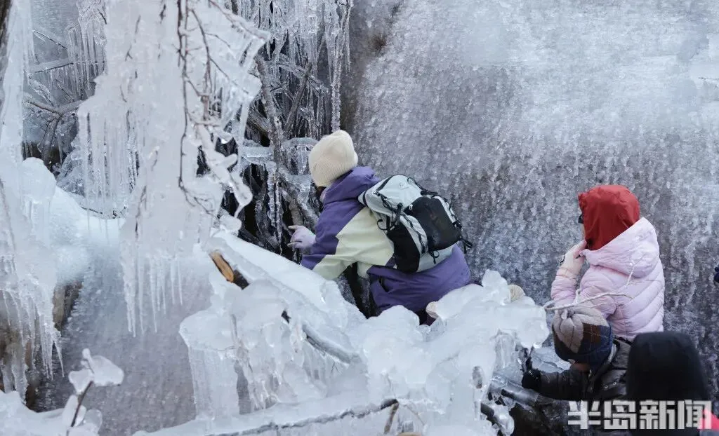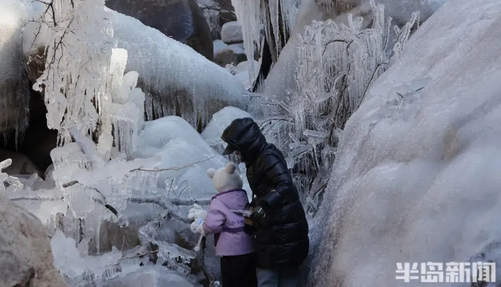 作为青岛冬季极具代表性的网红打卡地,北九水的冰雪景观每年都能点燃市民游客的出游热情。即便寒意袭人,大家依旧兴致高昂,沉浸式穿梭在银装素裹的山谷间,亲身感受 “冰雪奇缘” 般的梦幻意境,领略寒冬独有的视觉震撼。