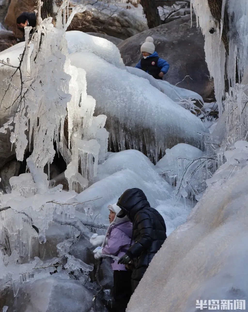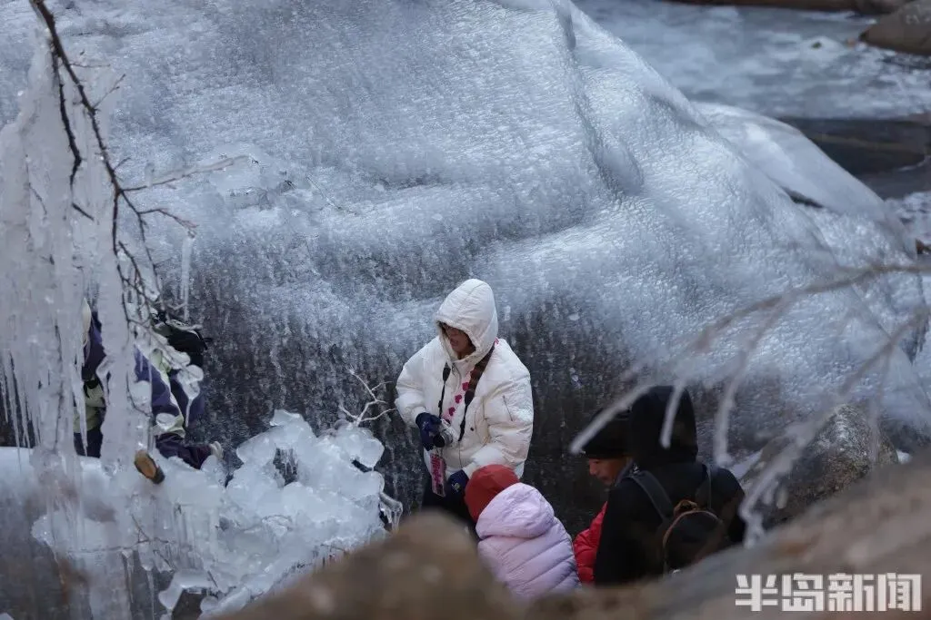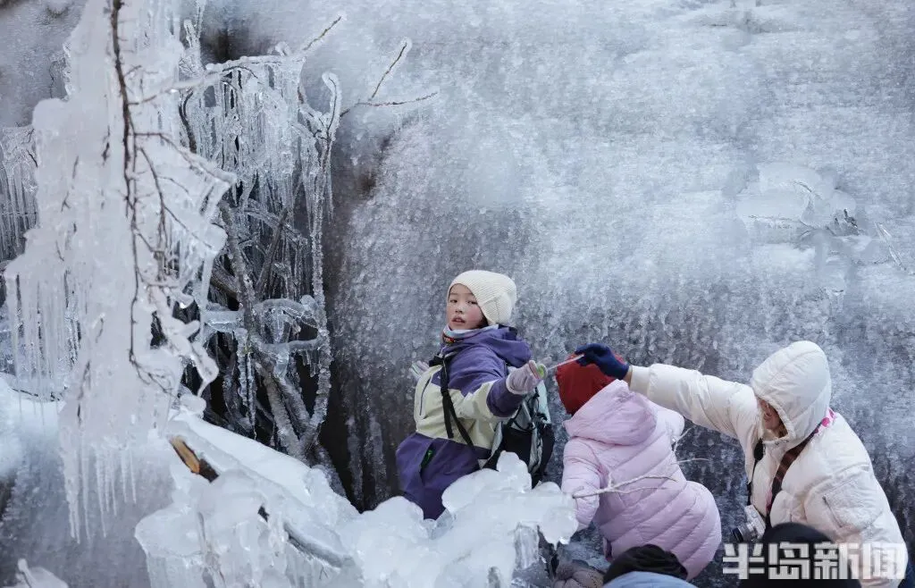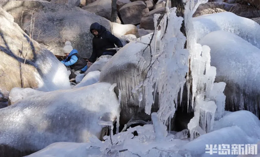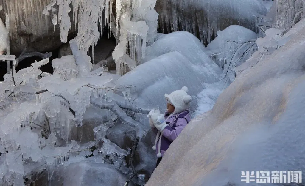 作为青岛冬季极具代表性的网红打卡地,北九水的冰雪景观每年都能点燃市民游客的出游热情。即便寒意袭人,大家依旧兴致高昂,沉浸式穿梭在银装素裹的山谷间,亲身感受 “冰雪奇缘” 般的梦幻意境,领略寒冬独有的视觉震撼。