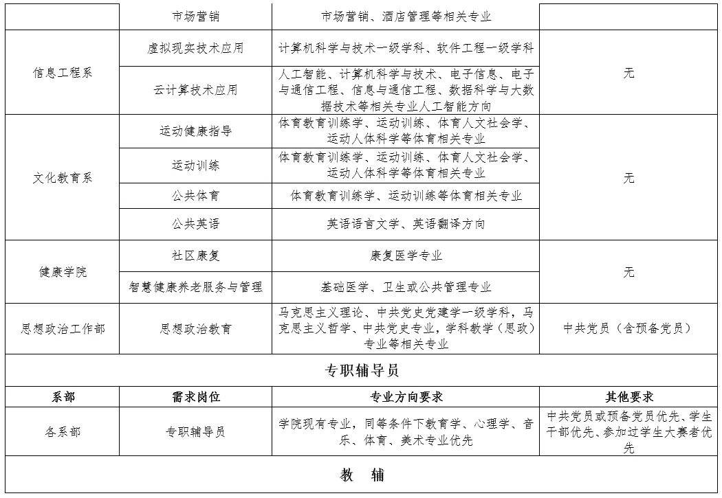 专职辅导员及教辅岗学历要求:硕士研究生