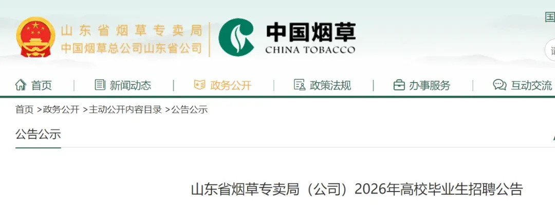 图源:山东烟草专卖局(公司)招聘网页 截图