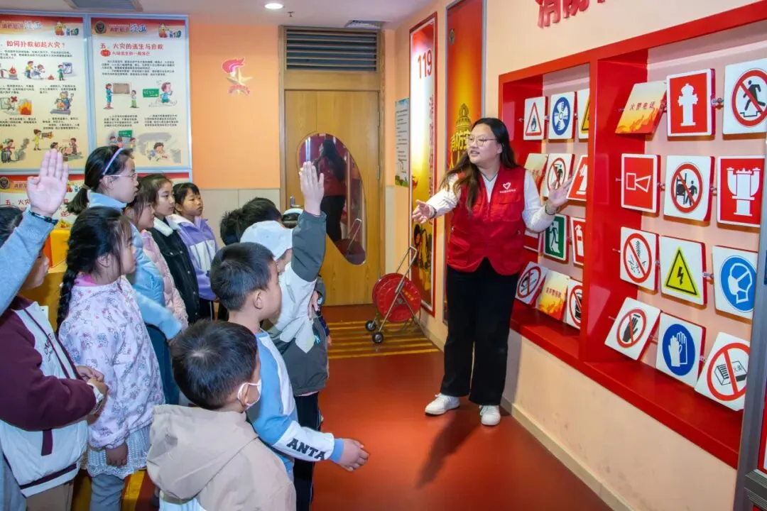 在此之后,志愿者们带领孩子们开启了一场生动的“标识探索之旅”。“我知道119是火警电话!”“这是禁止吸烟的标识!”孩子们指着各种颜色鲜明的安全标识。他们不仅记住了标识的形状和颜色,更理解了每个符号背后守护生命的意义,小小的标识也正在为无数家庭筑起一道看不见的安全防线。