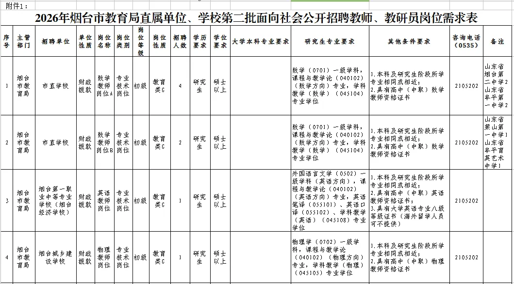 2026年烟台市教育局直属单位、学校