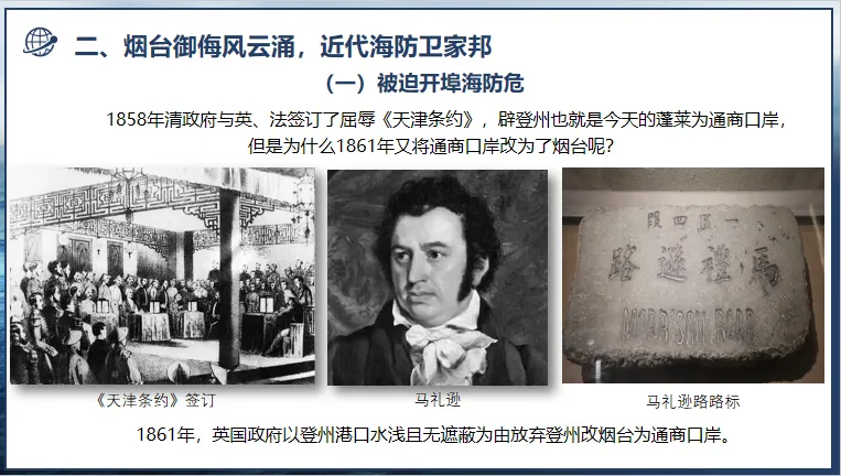 步入近代,鸦片战争的炮火彻底打破了古代海防的宁静。1840年以来,西方列强凭借坚船利炮轰开中国国门,清朝国力日渐衰微,陷入“有国无防”的困局,烟台也随之陷入严重的“海防危机”。但这片热土从未停下“御家邦、求自强”的探索脚步,始终在危难中探寻守护家国的道路。
