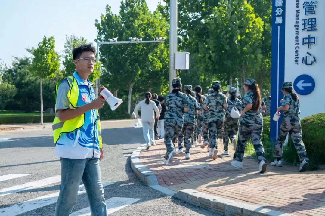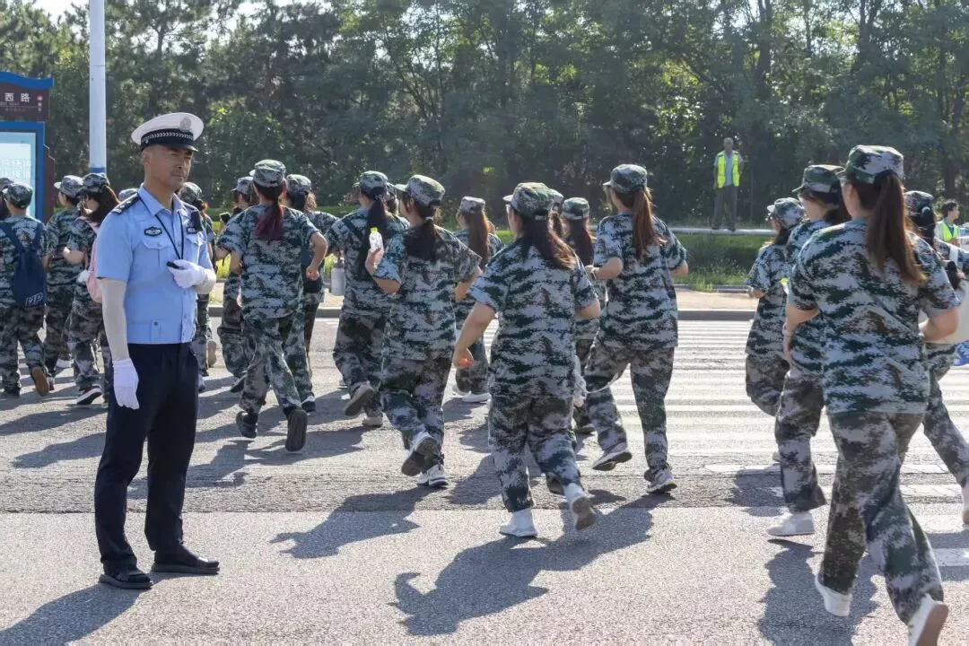 校内,他们帮新生整队、巡查路段;校外,衔接交警协调秩序,守住拉练起点与沿途关键节点,让校内外保障无缝衔接,安全不脱节。