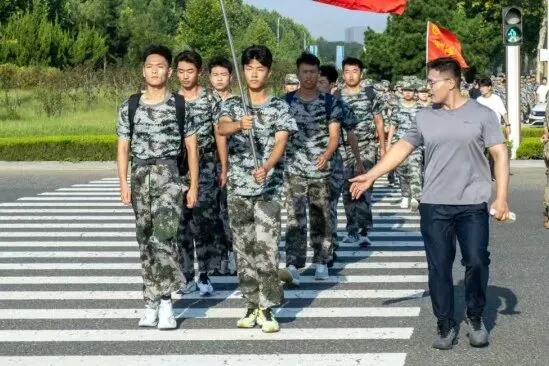 学哥学姐走在队伍前后,帮体力弱的新生拎水壶,喊着口号鼓劲,分享军训小经验,用过来人的温暖,让拉练路少了疲惫多了亲切。