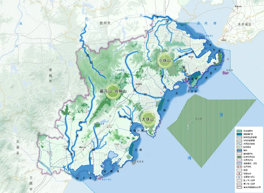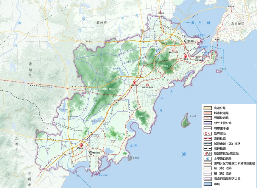 主城片区:包括原黄岛与原胶南城区,围绕小珠山生态核心外围的城镇开发边界所围合的区域,承载新区发展的核心功能。