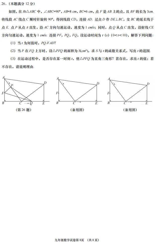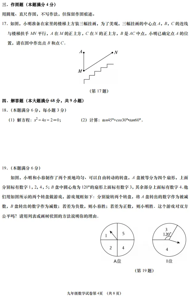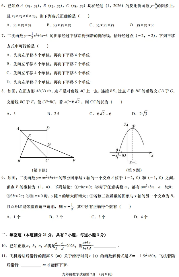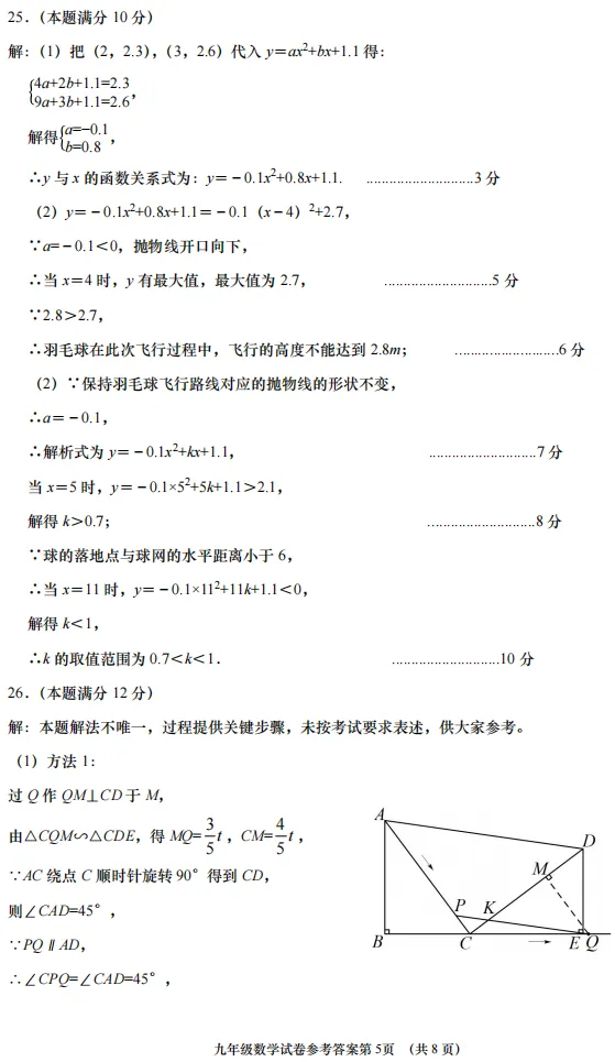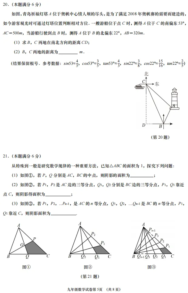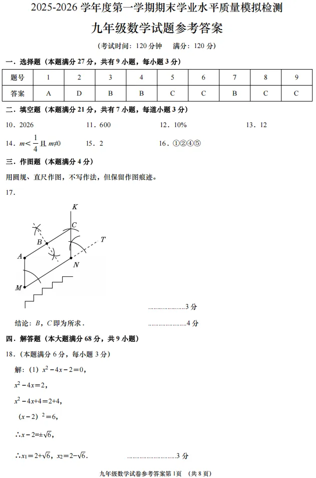 >2025-2026青岛市九年级(上)数学期末模拟试题(含参考答案)