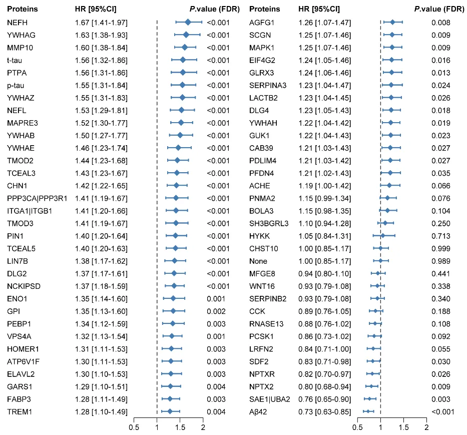 图3.脑脊液失调蛋白与认知诊断转化风险之间的关联