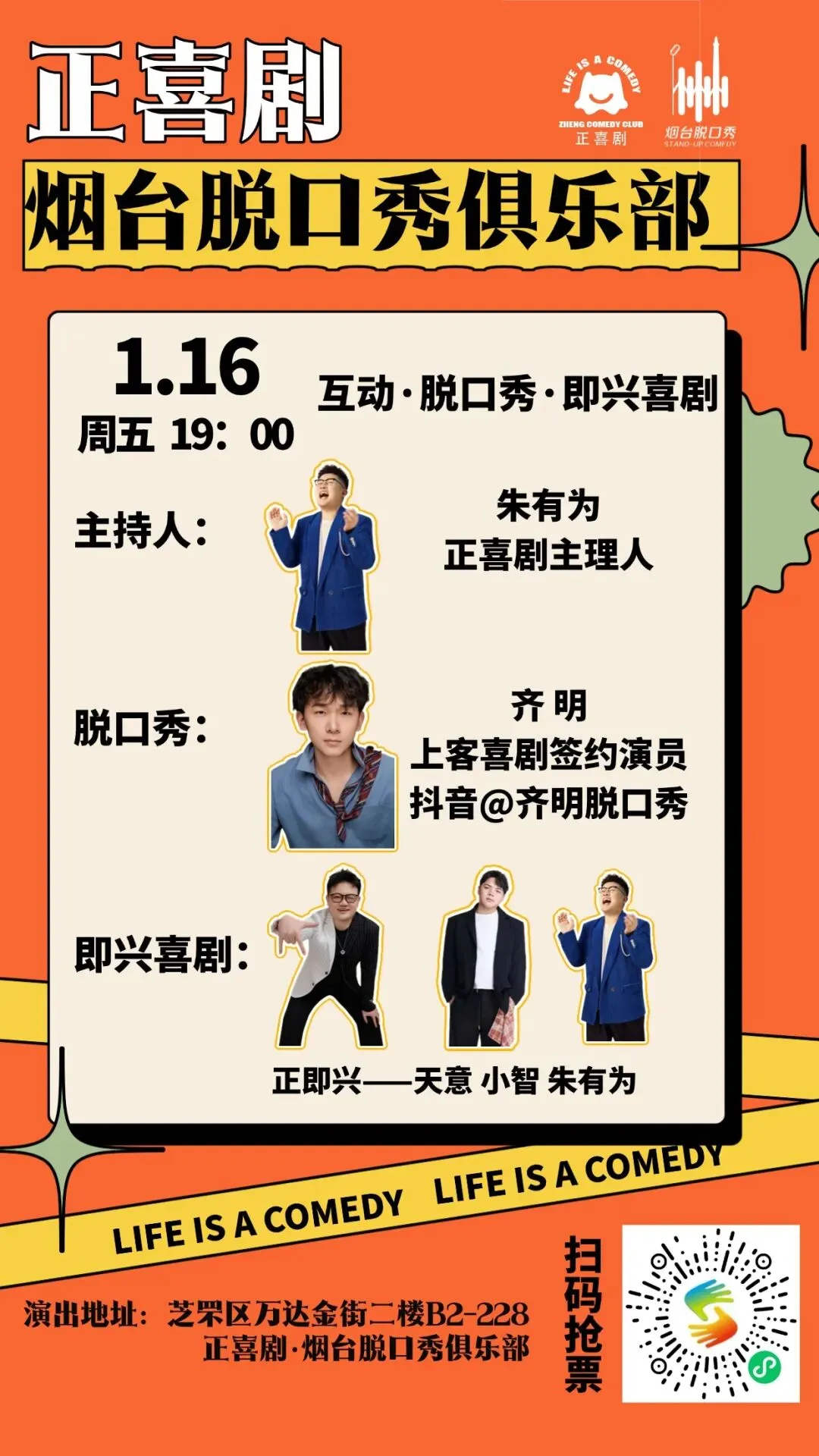 1.16周五 脱口秀演员齐明烟台首演 【互动·脱口秀·即兴喜剧】 忙了一周 记得来轻松一下