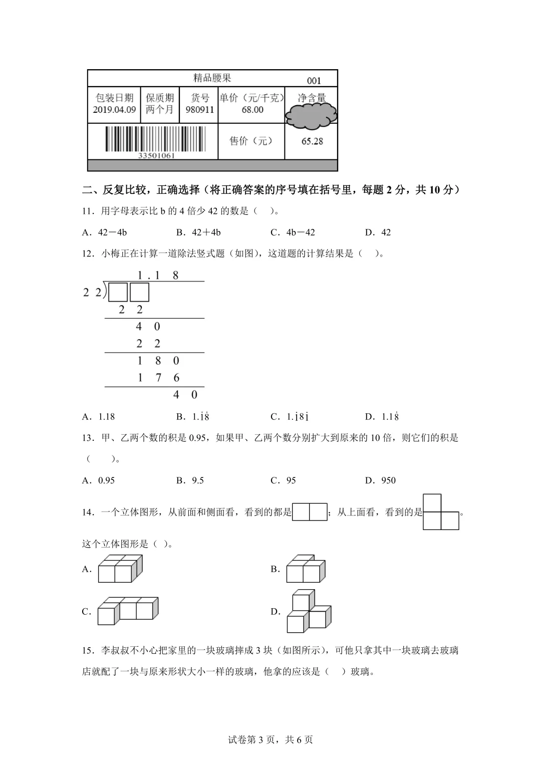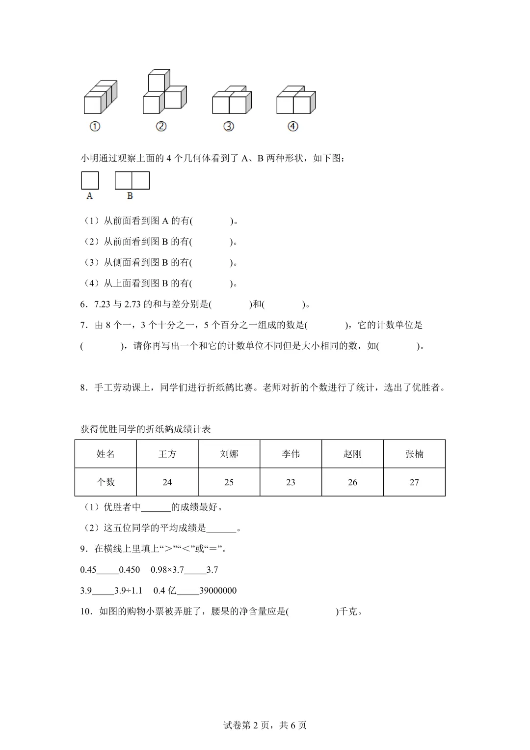 核心内容:大数认识、简便运算、立体图形三视图