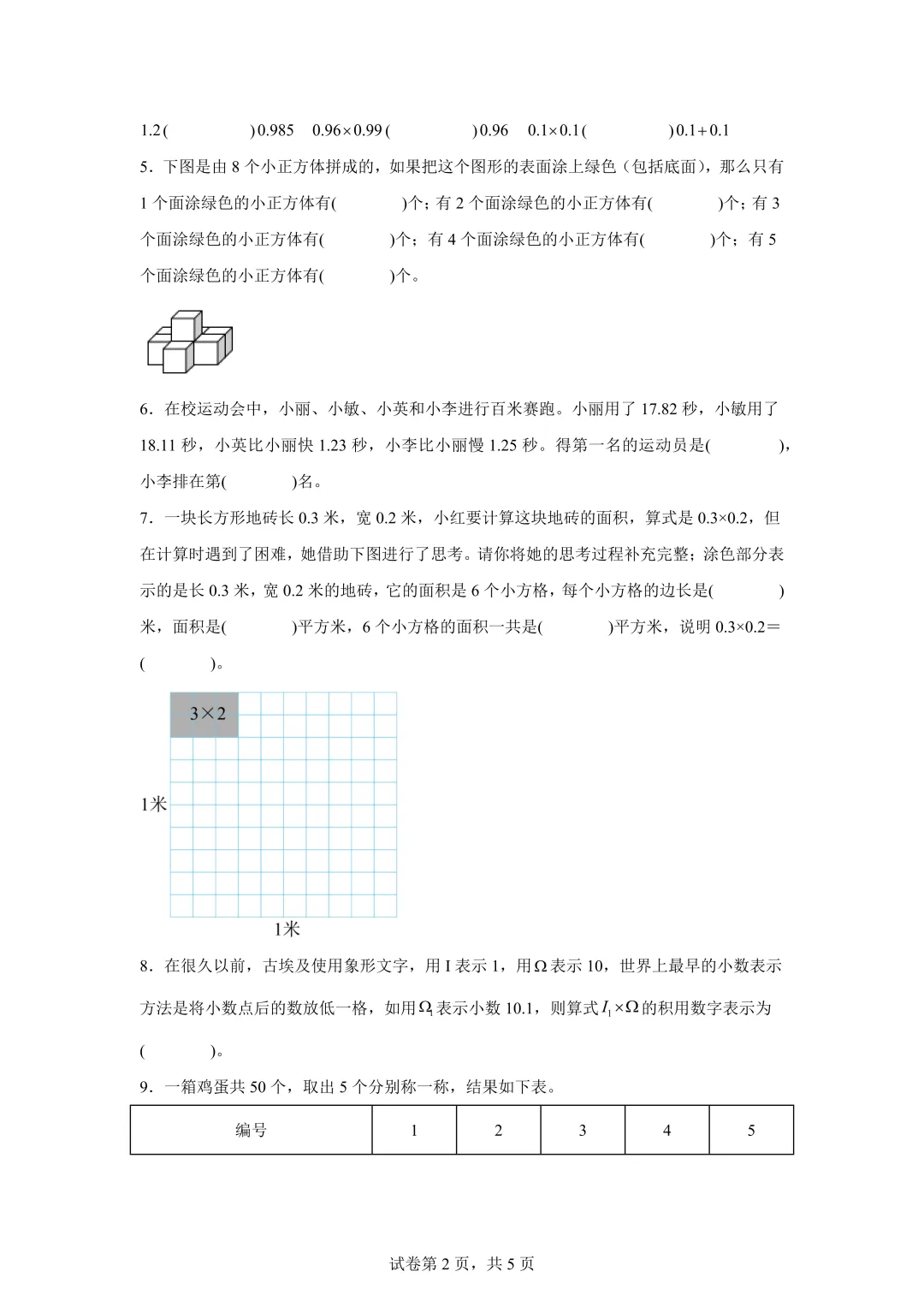 核心内容:小数四则混合运算、代数表达式、几何变换