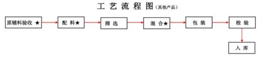调查发现,发生爆炸的是车间内的立式混合设备,较卧式混合设备容量小,可进行小批量订单生产,其结构、功能与未予许可的浆(裹) 粉生产设备基本相同。经检验鉴定,从爆炸的设备内部提取的爆炸物料与浆粉配料基本一致。浆(裹)粉主要生产工艺为采用小麦粉、食用玉米淀粉、氧化淀粉、木薯淀粉、食用盐、食品添加剂、香辛料等原料,通过配料、筛选、混合后制成不同成品,经包装、检验后产品入库。其工艺流程如下。