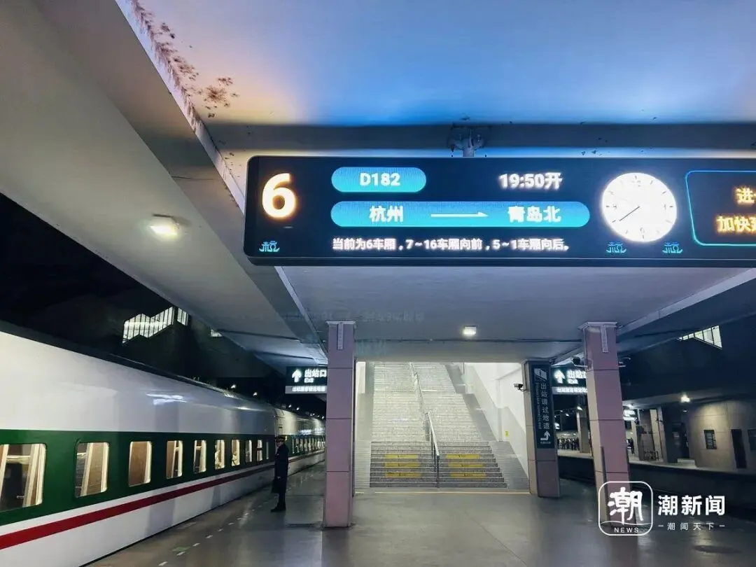 这趟列车于19时50分从杭州始发,途经海宁、嘉兴、上海松江、苏州、无锡、常州、南京、徐州等站,次日早上9点05分到达青岛北站,全程运行约13时15分钟。