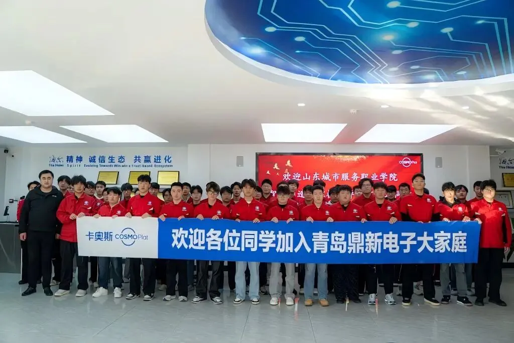 为深入贯彻党团共建育人理念,推动产教融合高质量发展,1月9日,山东城市服务职业学院智能制造学院组织50余名师生赴海尔卡奥斯创智物联旗下子公司——青岛鼎新电子科技有限公司开展实践交流活动。学院团总支书记潘俊达、综合办公室主任陈长勇、智能制造装备教研室主任于江华及教师骨干张玉蓉、许兵组成党员代表团队前往,青岛鼎新电子人力资源部主管黄鹏对师生一行给予热情接待,双方以党团共建为纽带,奏响了校企协同育人的新篇章。