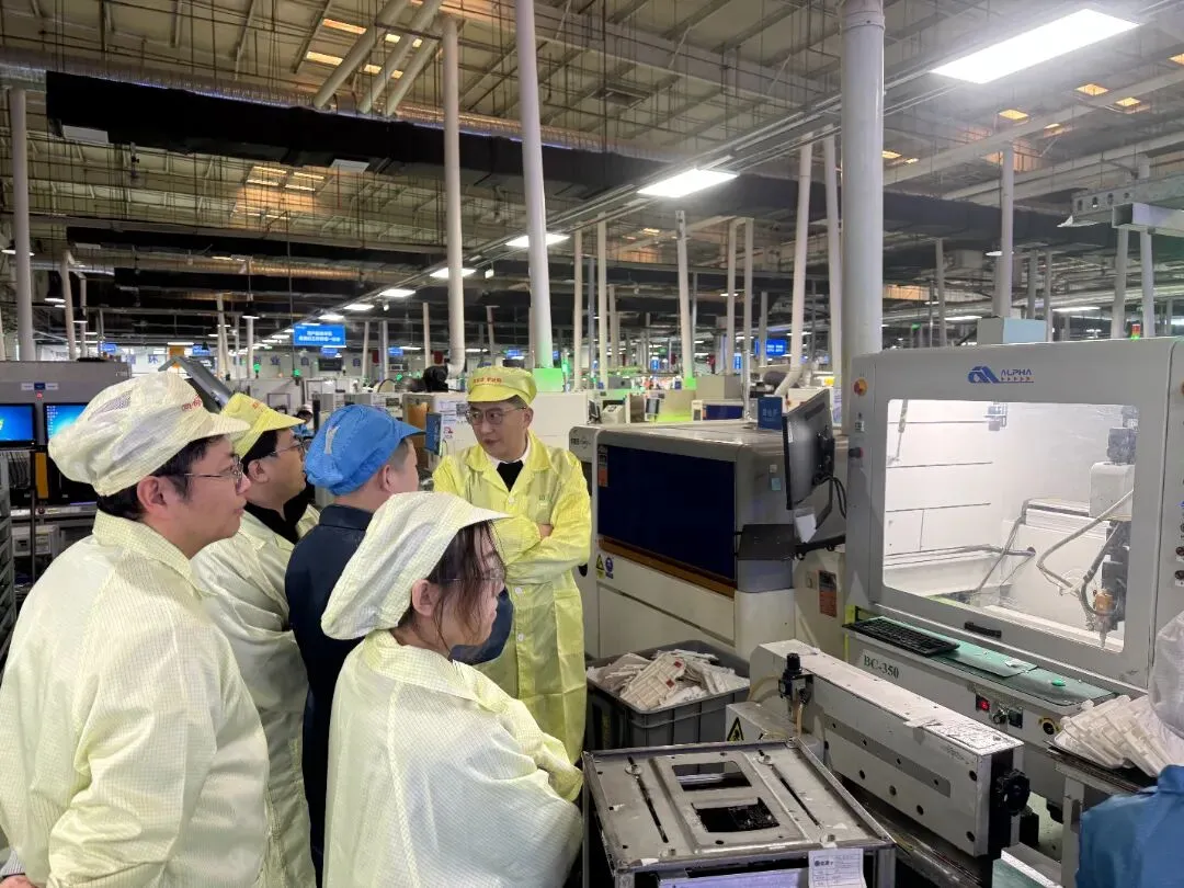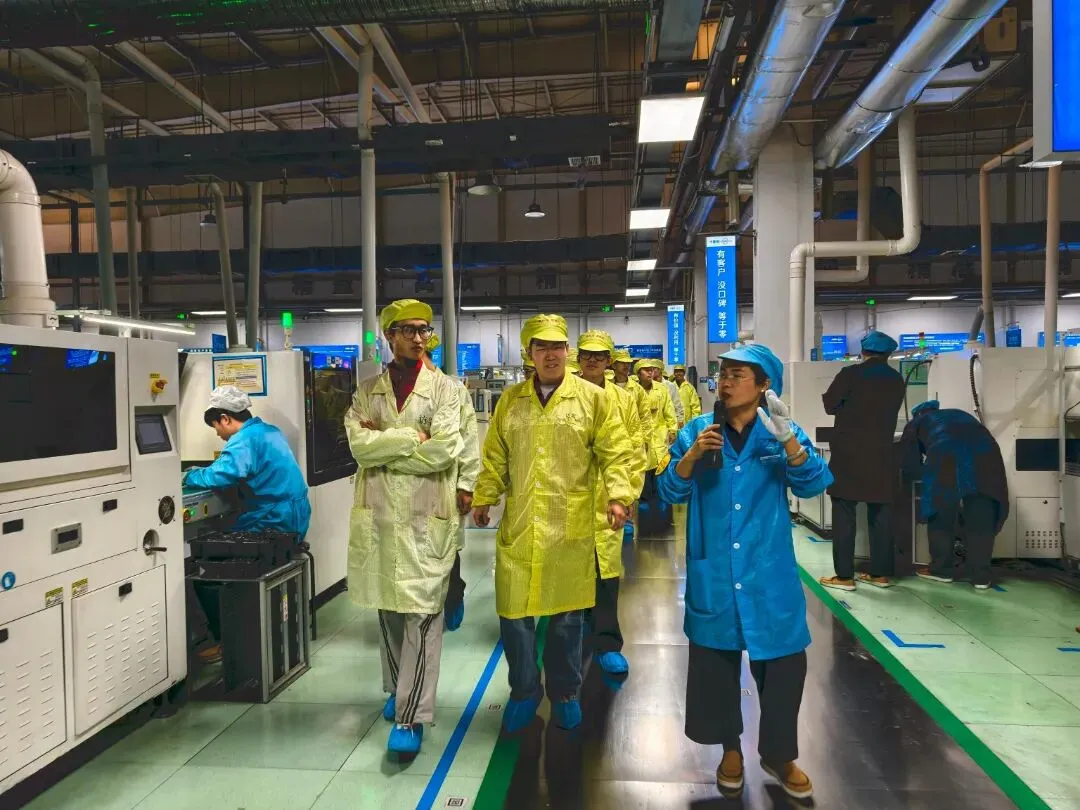 以党团共建为抓手,学院将学生管理与产教融合紧密结合,让学生在实践中锤炼本领、坚定信念。活动期间,在党员教师和带领下,学生们分组参观了企业SMT生产线、自动化测试工段及智能仓储系统,近距离感受智能制造的魅力。企业技术人员结合生产流程,生动讲解了专业知识在实际工作中的应用,让课堂理论“活”了起来。