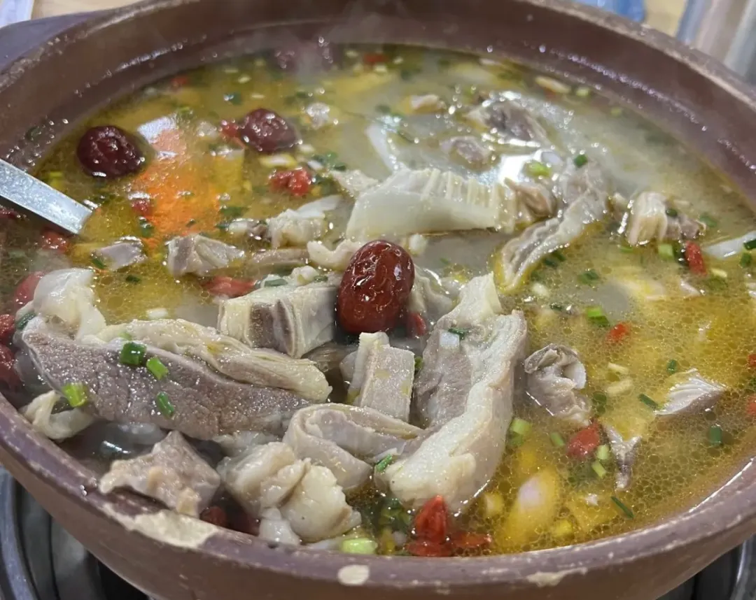 招牌羊肉炉:先舀勺汤尝,入口是温温的鲜,带着枣子的甜润和骨汤的厚,咽下去从喉咙暖到胃里,一点膻味都没,就剩清清爽爽的香;夹块羊肉,皮是糯叽叽的胶质感,一咬就黏嘴,肉嫩得几乎不用嚼,咸淡刚好裹着肉香,连筋带肉一起吞,香得想舔筷子;再扒拉扒拉,还能捞着带脆边的羊杂,嚼起来咯吱响,浸满了汤的鲜,越吃越有劲儿。暖汤裹着嫩肉,甜香混着鲜,每一口都是实打实的舒服,吃完擦嘴的时候,连手指尖都是暖的,出门冷风一吹都不觉得凉。