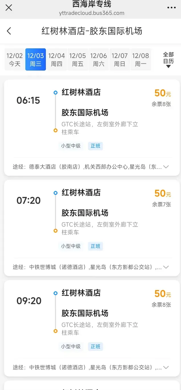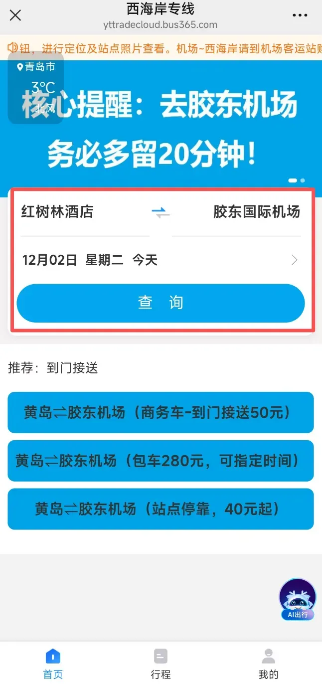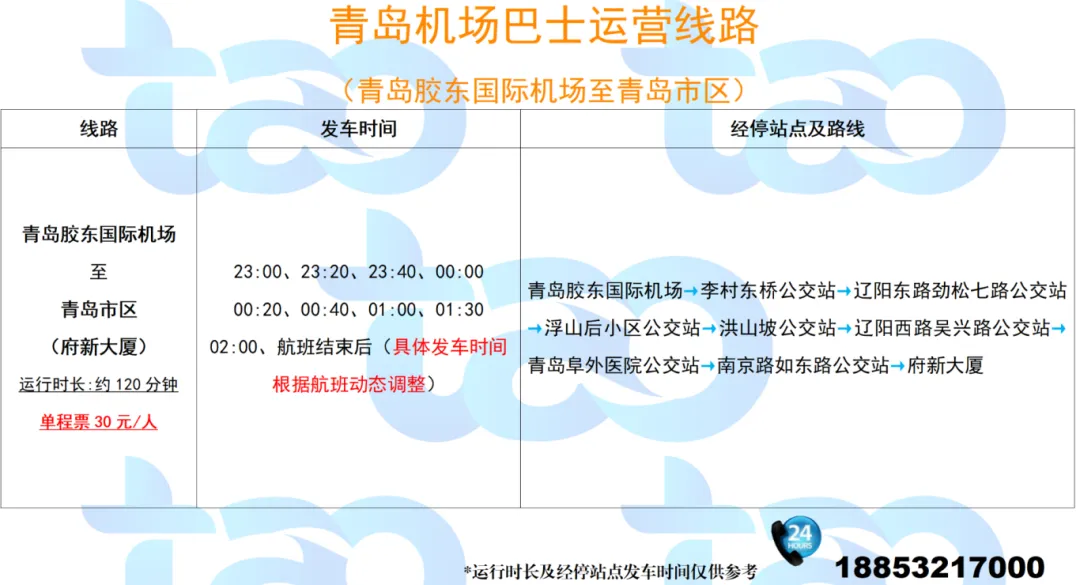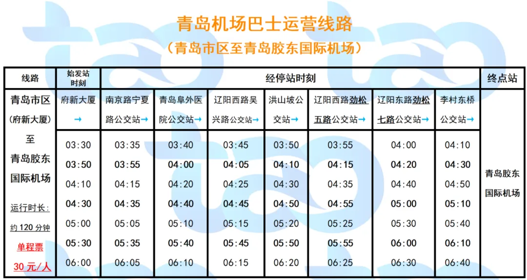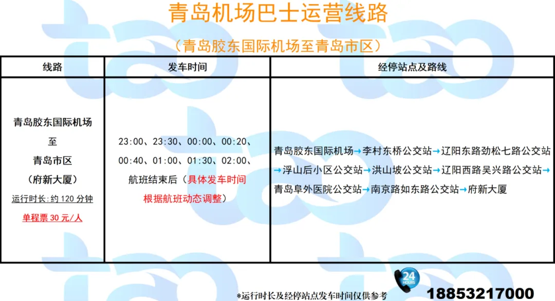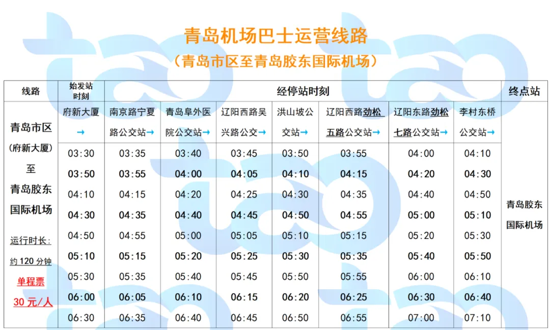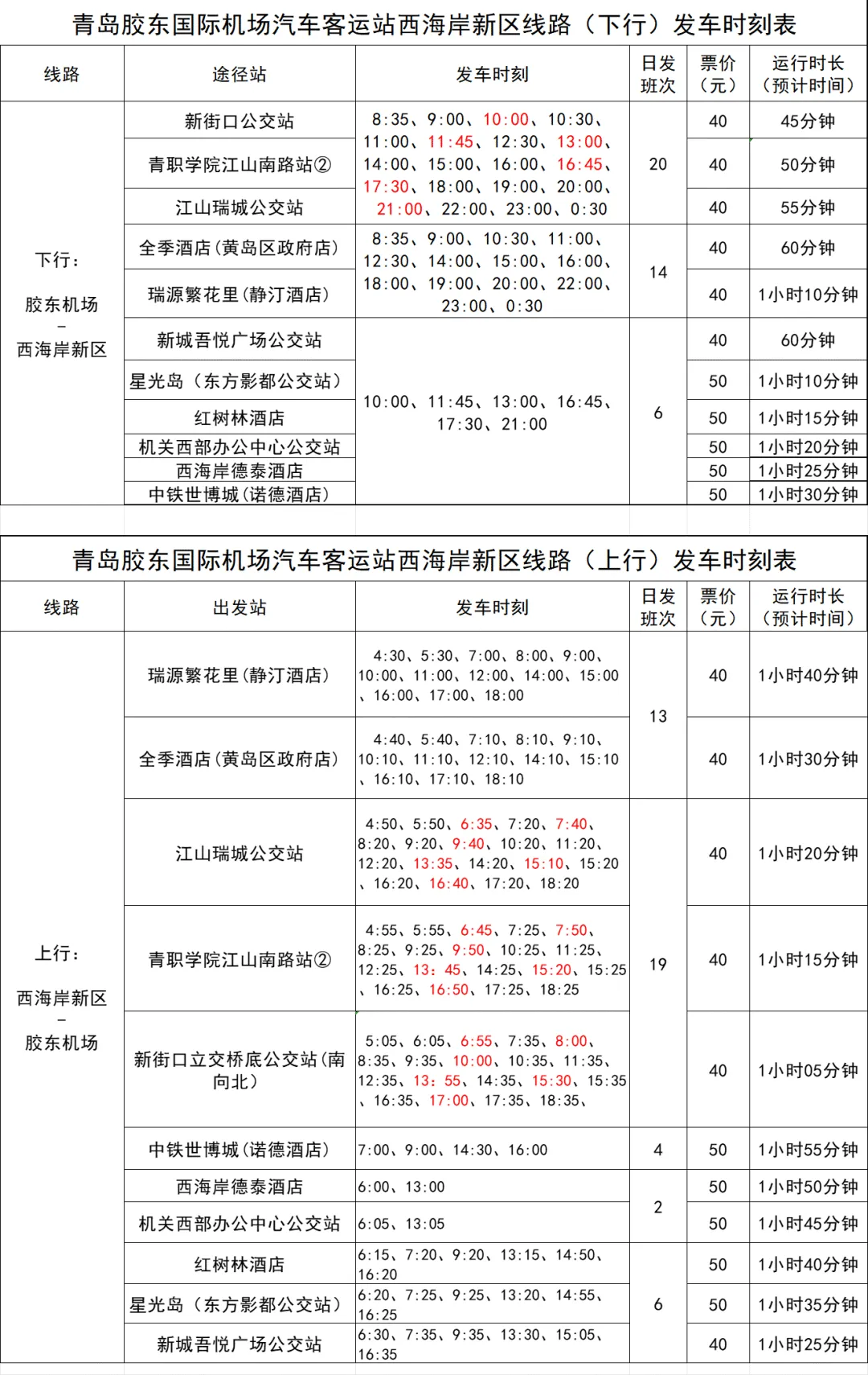 青岛胶东机场↔西海岸新区机场巴士时刻表