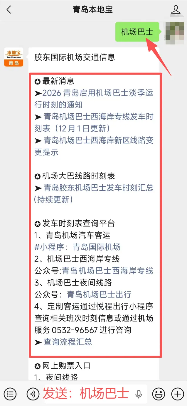 1.“青岛国际机场”微信小程序→“交通换乘”→“机场巴士”版块购票;