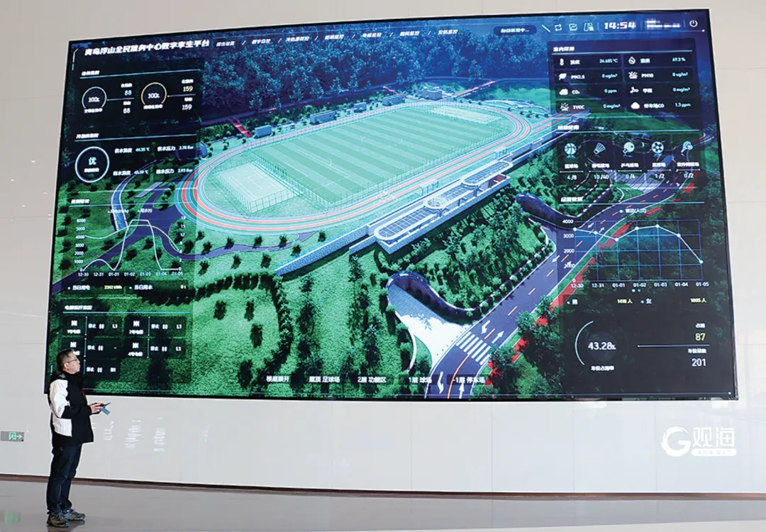 “过去管理这样大规模的场馆,要靠人跑、靠经验管。现在,AI成了我们的‘数字孪生兄弟’。”浮山全民健身中心智能化负责人陈明指着屏幕说,数字孪生驾驶舱深度整合馆内21套智能系统、522台设备和834个监测点,通过AI算法分析电、水等能耗趋势与构成,在保障舒适度的前提下,对空调、照明、给排水等关键设施实施实时监控与精准调控。