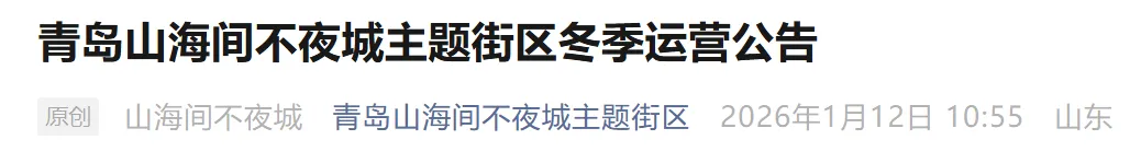 为进一步优化游览体验,提升服务品质,青岛山海间不夜城主题街区在冬季运营阶段将对部分业态进行设施设备检修及升级,现将相关事宜公告如下: