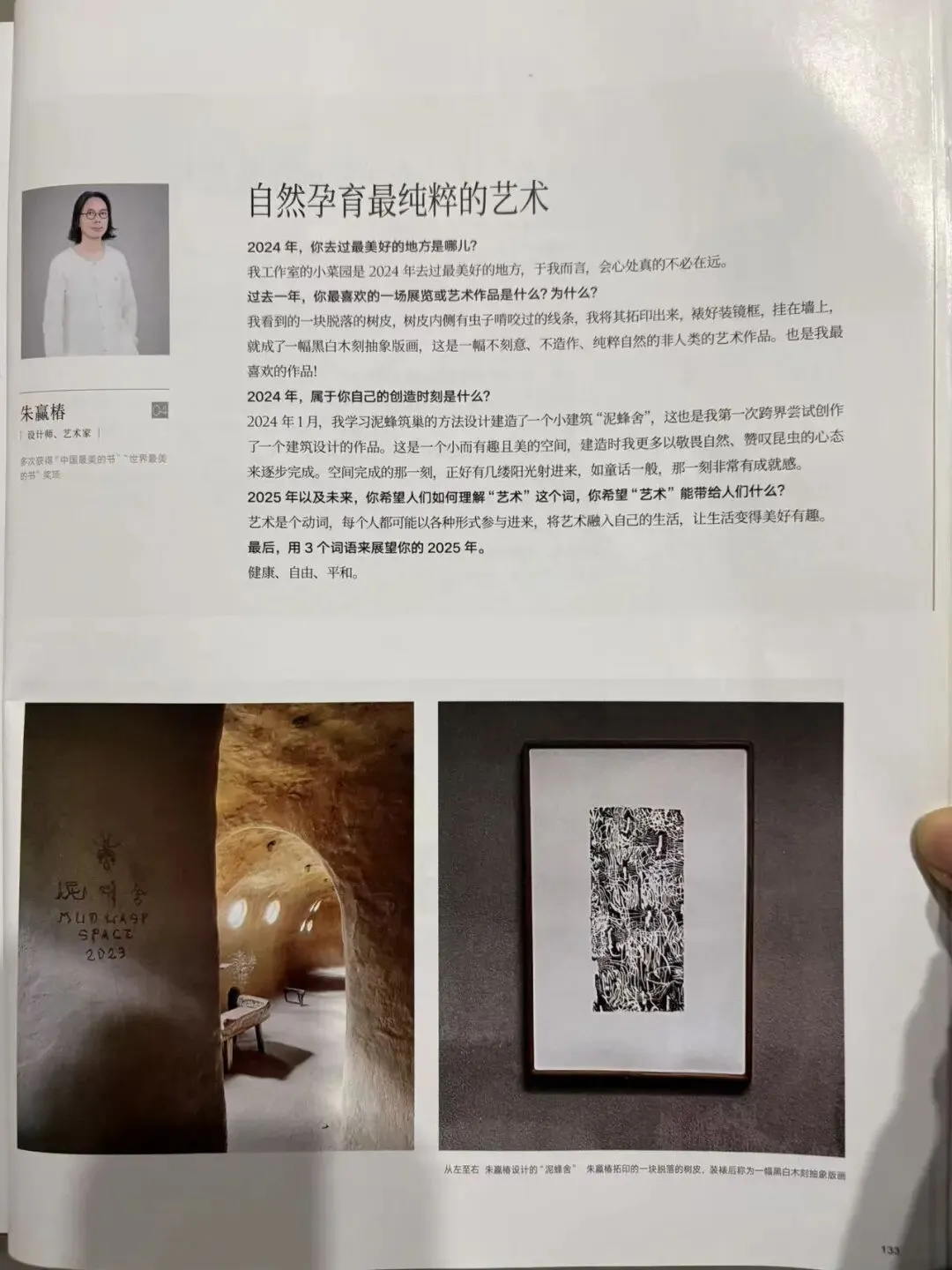 我看到的一块脱落的树皮,树皮内侧有虫子啃咬过的线条,我将其拓印出来,裱好装镜框,挂在墙上,就成了一幅黑白木刻抽象版画,这是一幅不刻意、不造作、纯粹自然的非人类的艺术作品。也是我最喜欢的作品!