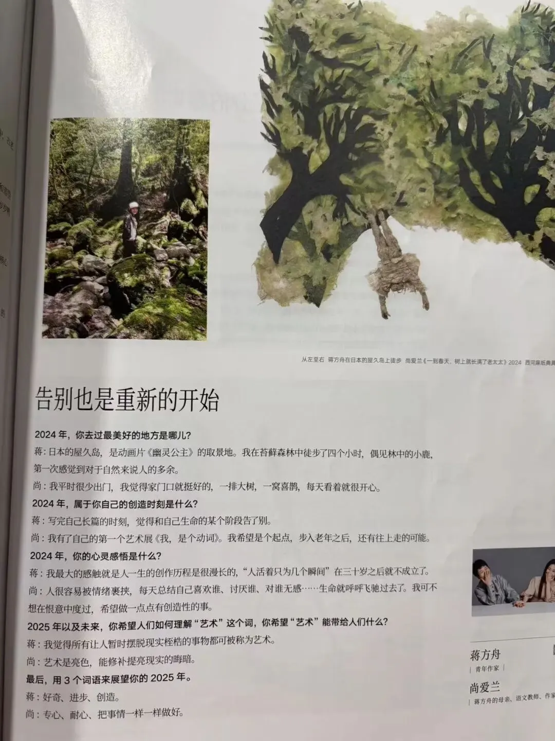 外甥女好不容易休两天班,来青岛。她不是第一次到青岛,却是第一次来我家。昨晚一边吃饭,一边规划今天的行程:上午睡个懒觉,去连山岛海边喝杯咖啡,吹吹海风,然后一路从银沙滩到金沙滩,在东环岛远眺汇泉湾,过海底隧道……下午到万象城剪头发,晚上去吃海肠捞饭。我跟外甥女说:明早吃馄饨,我再去买两根油条……这里的油条,一根够全家人吃,你一定要尝尝。结果,计划上午11点前出门,小曦同学12点才起床。我和外甥女依计划吃了早餐,小曦喝了半碗鸡汤,啃了半个面包。路上,我跟外甥女说:夏天,恁姥姥还叮嘱我“好好跟小曦说说,可别叫她(一个人)下海哈……”她俩都笑起来。我继续:恁姥姥不知道,她这半年连海边都没来过,喊都喊不来。根本都不用担心她会下海。小曦同学居然是头一回到银沙滩。到了金沙滩,她连车也没下,说在停车场等我们。本来计划沿海边一直到东环岛,眼看就到了约定的理发时间,就直奔了万象城。理发店装修风格冷淡,但生意很火爆。看到这面墙上的岩中花树,就拍了下来。难道店主是“岩中花述”的铁粉?外甥女和小曦同学两人约的同一个理发师,等待的时间比预计的要久。我刷手机刷到还剩10个电,又翻了三本《时尚芭莎》。原计划的晚饭只能在万象城吃,外甥女晚上八点的高铁回济南。我跟外甥女说:这次太匆忙了,你都没到栈桥看海鸥……哪天休班,买张高铁票就来了。济南到青岛还不到两个半小时。现在人人一部手机,翻阅纸质杂志的人越来越少了吧。以前乘飞机每个座位前都有一本航空杂志,我很喜欢看,最近几次搭乘飞机,我发现航空杂志都不是标配了。不知道是不是错觉。这期2024年的《时尚芭莎》,访问了20位学者和艺术工作者,问了他们同样的问题。2024年你去过最美好的地方是哪儿?