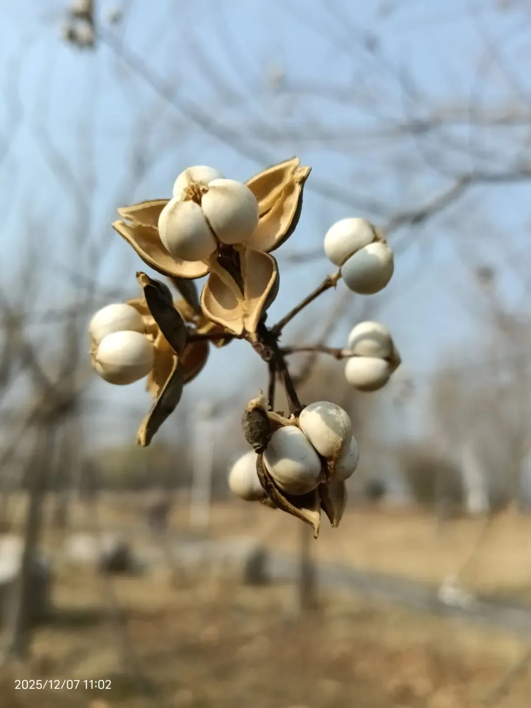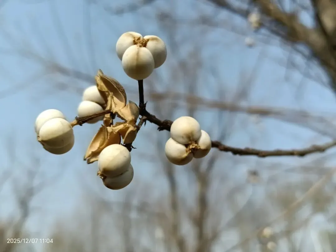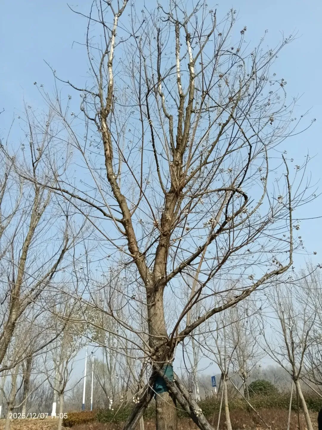 去年12月初,在夹河公园又见到一株。从树周围绑着的支柱可以看出是新栽的。