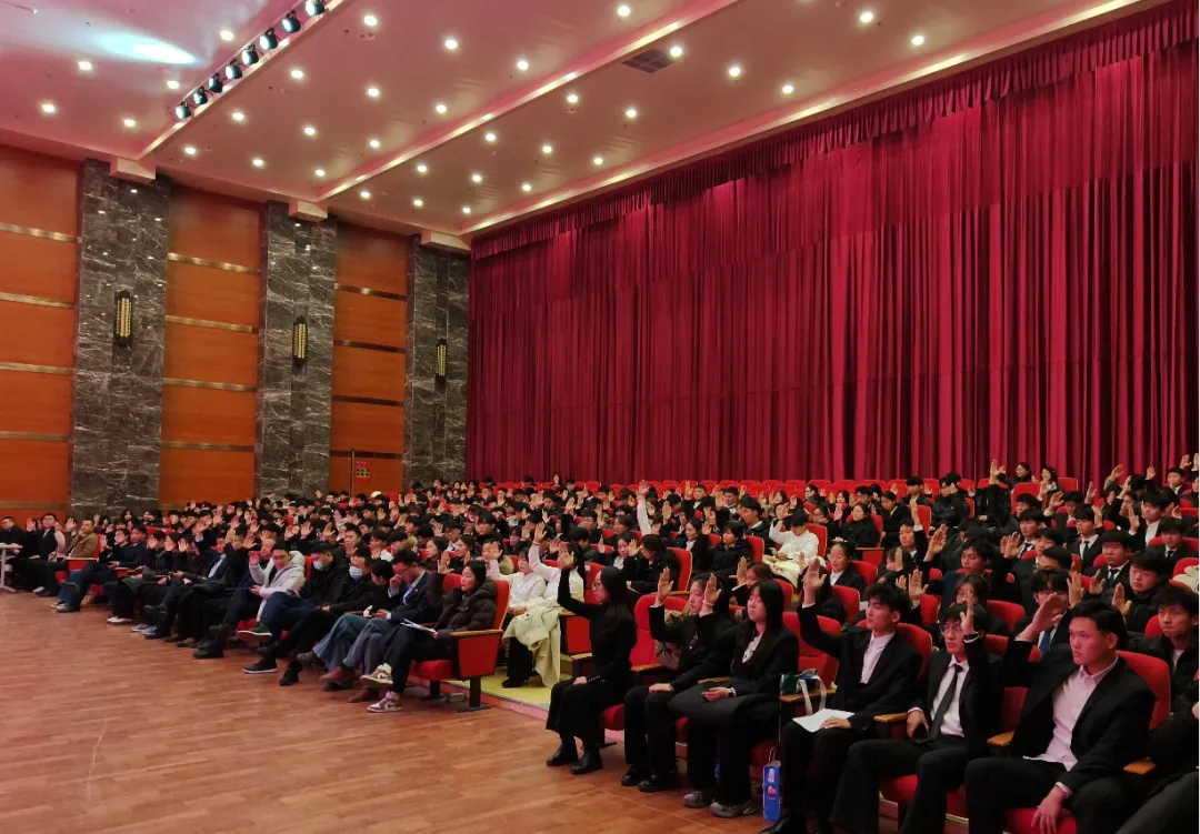 12月24日,我校第五次学生代表大会在大学生活动中心召开。招远团市委副书记张旭彤,学院常务副院长魏超,党委副书记、副院长宋健等领导出席会议;各系(院)党总支(支部)书记、团总支(支部)书记及211名学生代表参会。大会由学生处负责人主持。