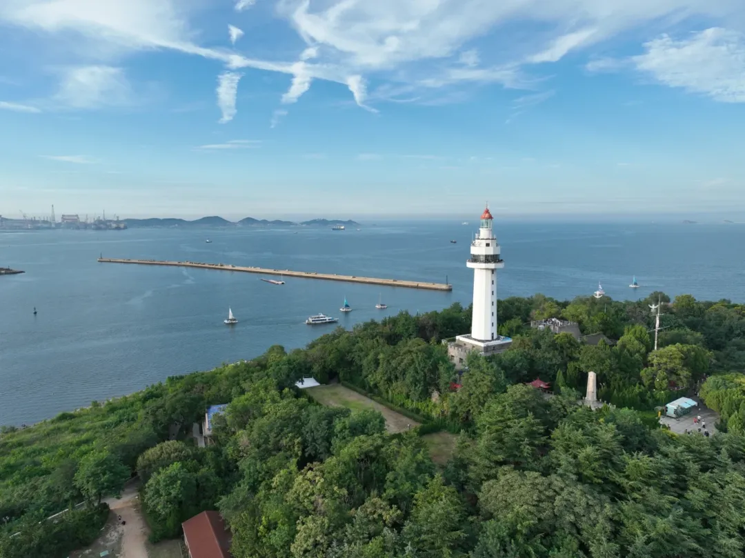 第一天就去烟台山。灯塔立在坡上,海风直接拍脸,夕阳正好看海面金光。名字有来路,明代设烽火台,遇敌就点烟,城里远看一缕烟,所以叫烟台。