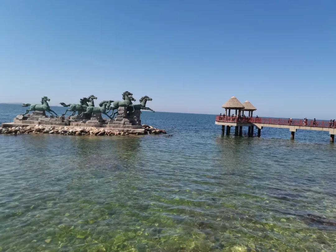 第三天留给开发区和养马岛。开发区有金沙滩,沙细,人家带娃跑得欢。养马岛路好开,海面平,桥上停车别久留,拍两张就撤。