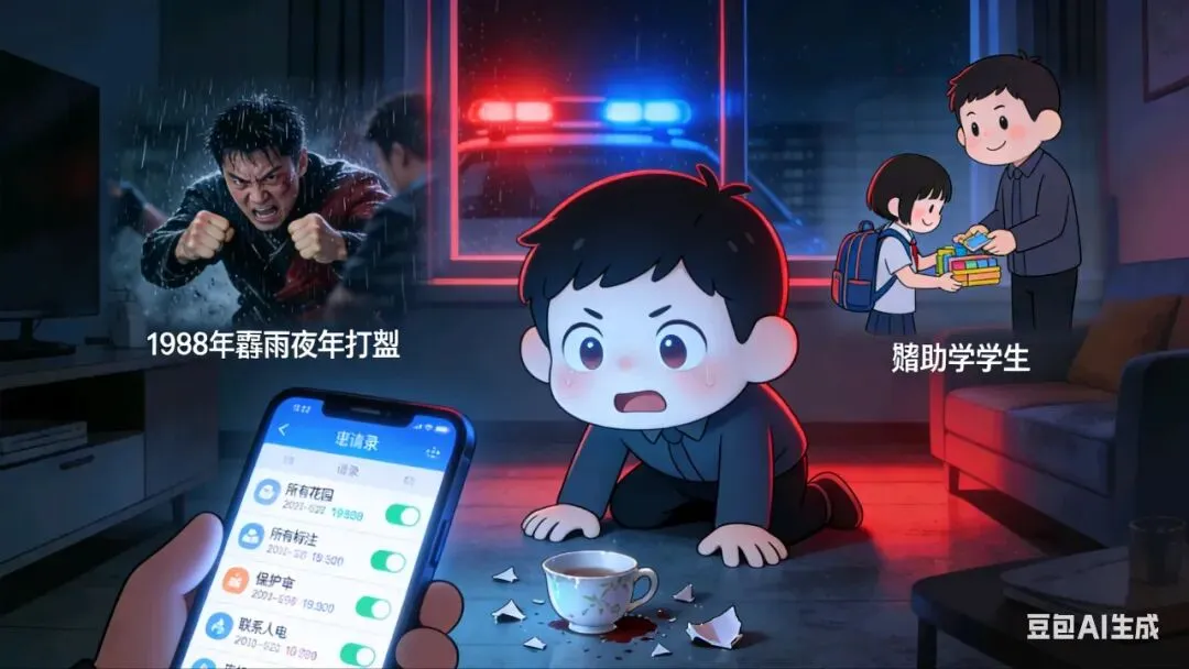 副驾驶座上,是个十九岁的少年,叫张良。他穿着定制的阿玛尼卫衣,手腕上的百达翡丽表盘在夜色里闪着冷光,可他的脸白得像纸,眼窝深陷,嘴唇干裂,双手死死攥着裤腿,指节泛白,浑身都在细微地颤抖。他的目光死死盯着那扇红得刺眼的门,眼里翻涌着恐惧、悔恨,还有一丝残存的、不该有的痴妄。