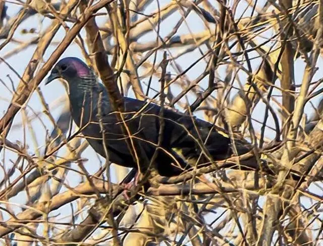 当时这位观鸟者压根没把它当回事 , 就觉得是只深色家鸽 , 或者斑鸠?体型稍微大了点 , 随手拍了张照片 , 转头就去追别的鸟了。