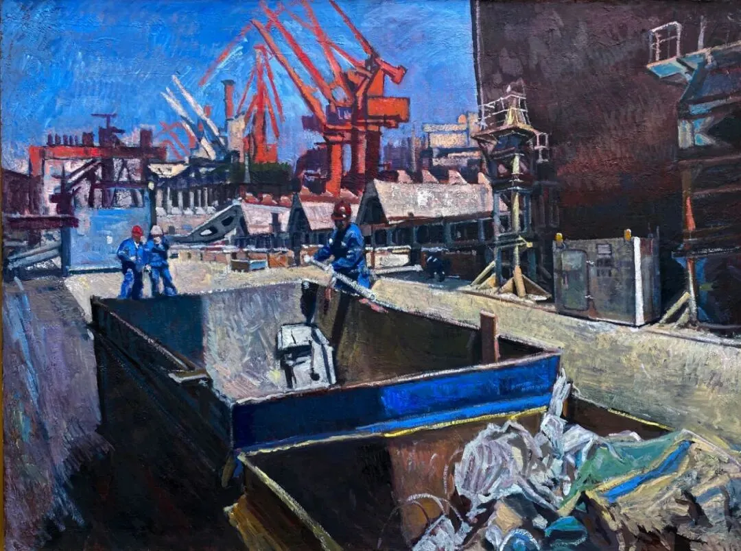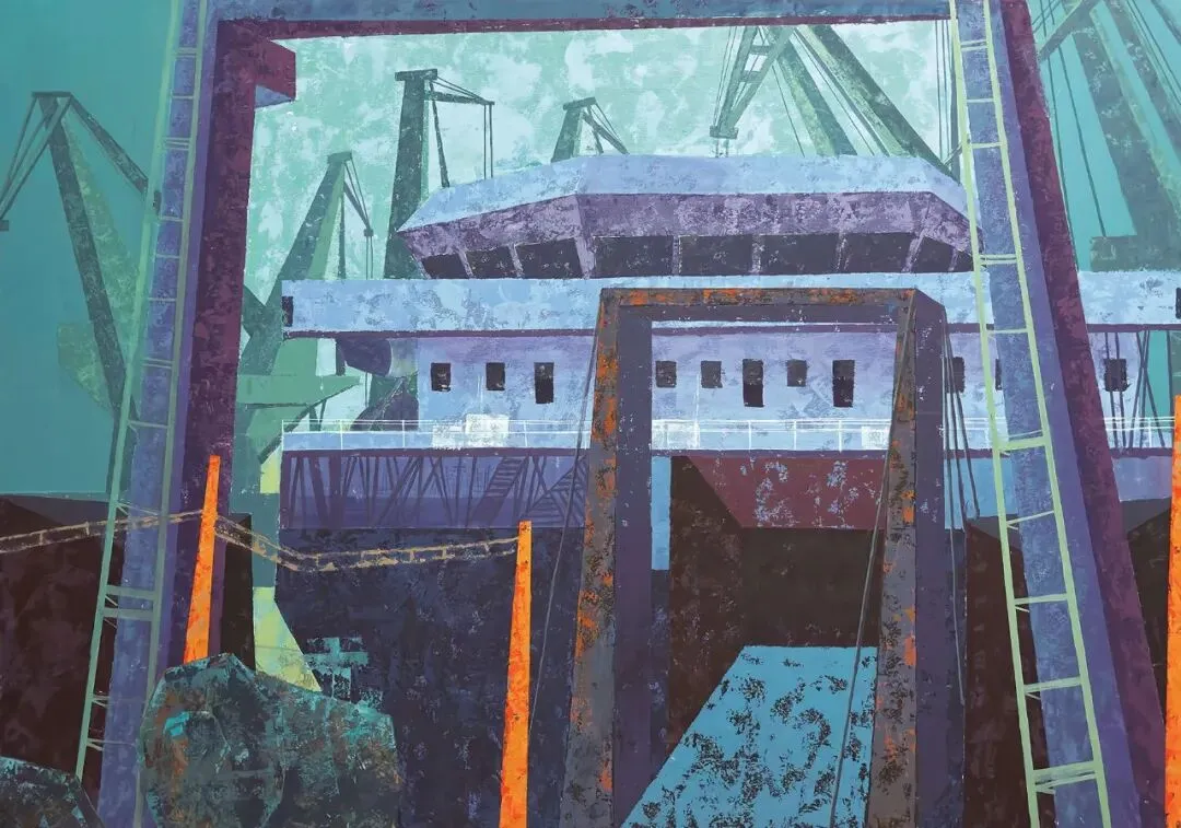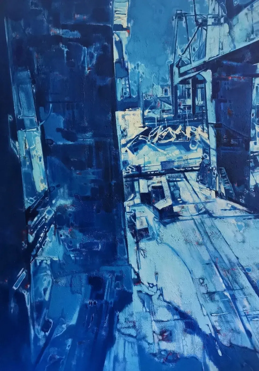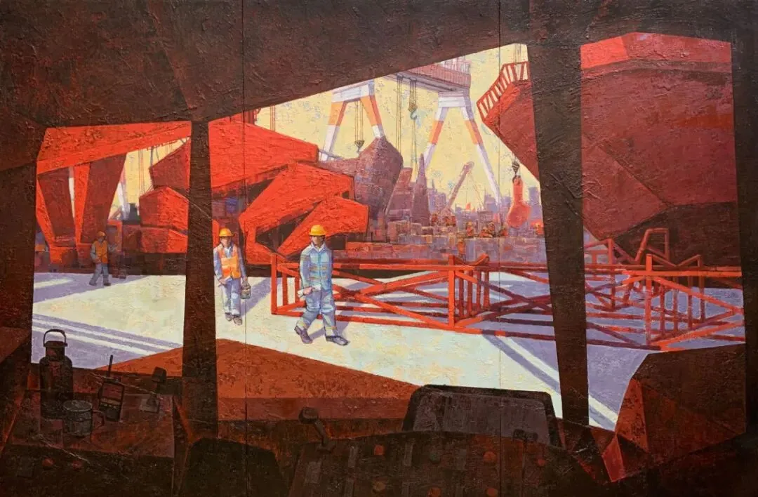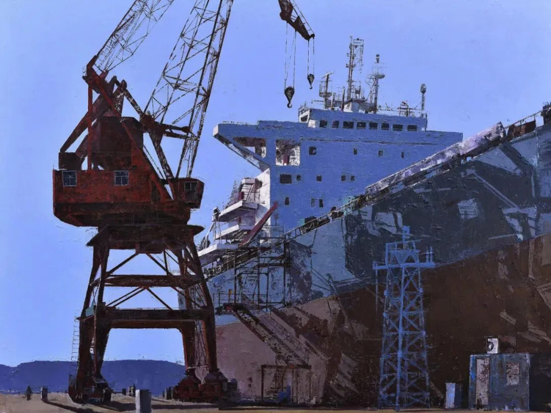 葛成根《船厂午后·巡检者的工业诗行》120×180cm