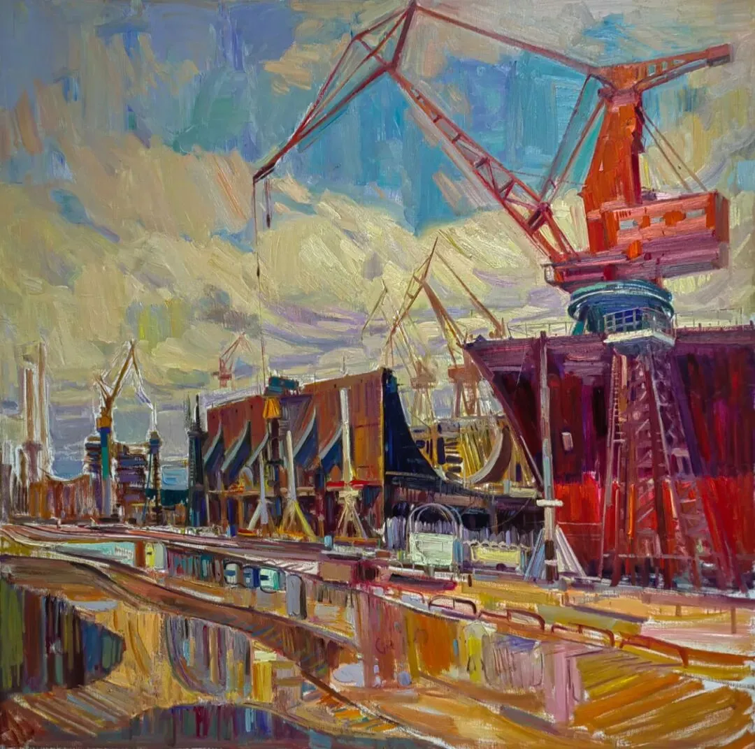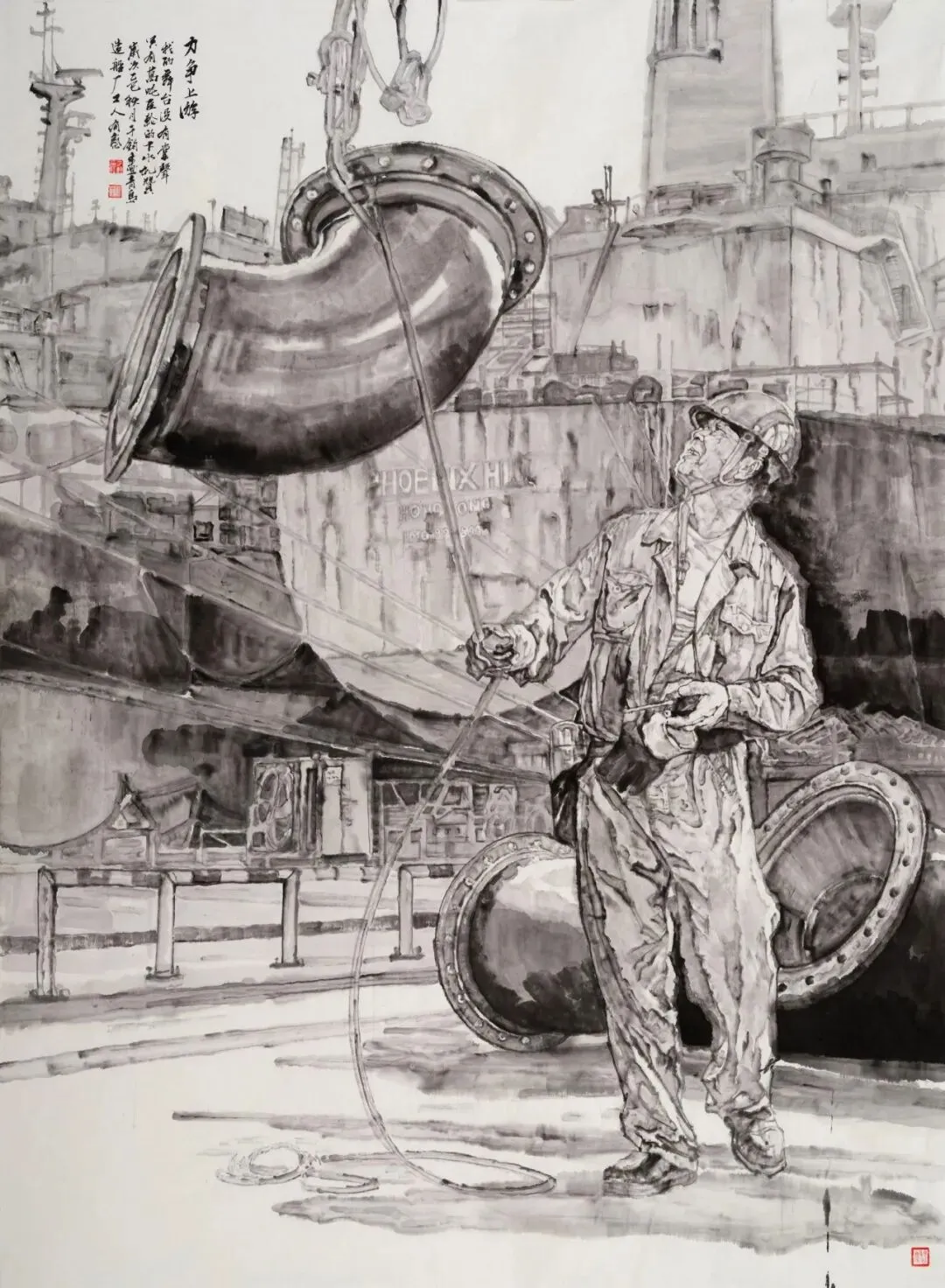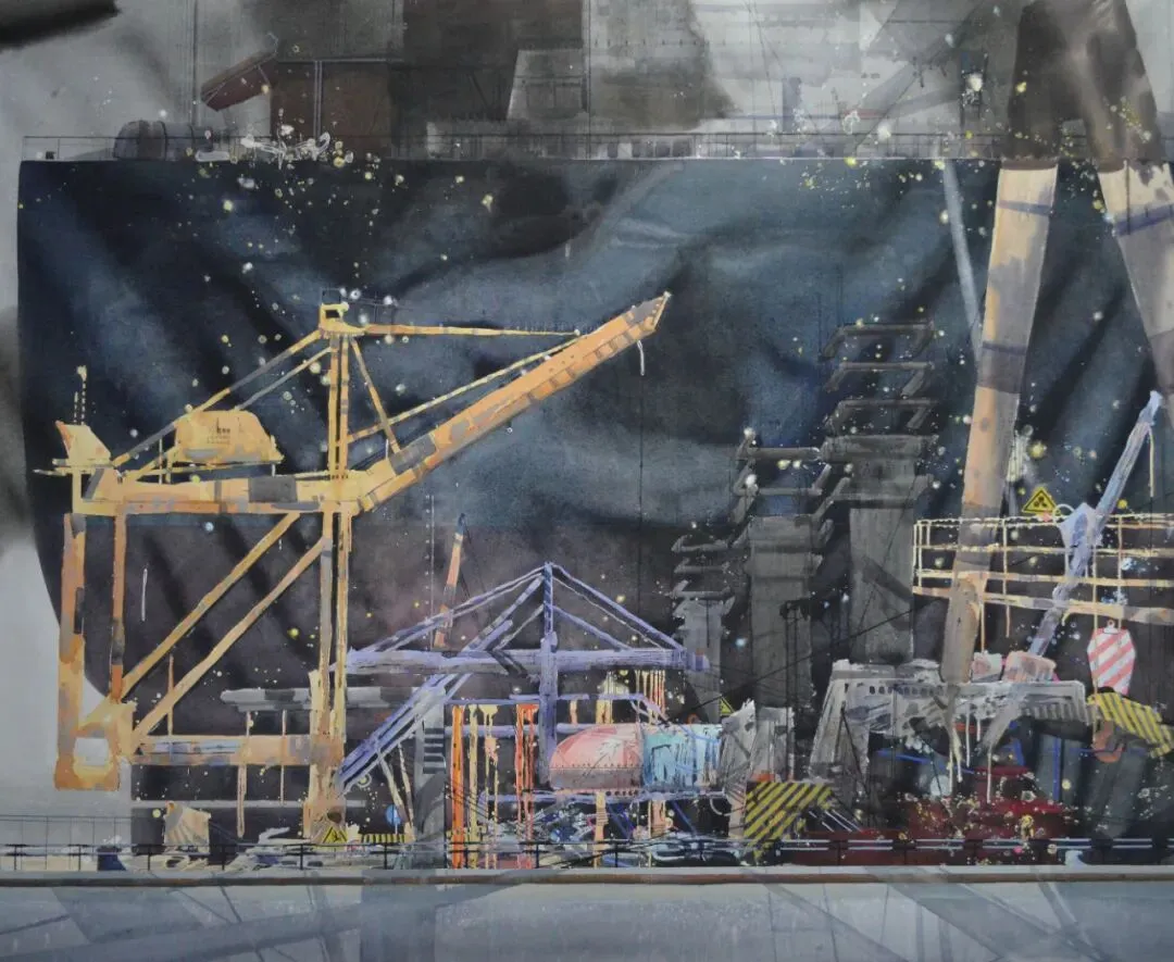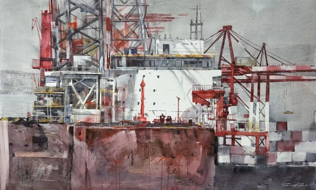 葛成根《船厂午后·巡检者的工业诗行》120×180cm