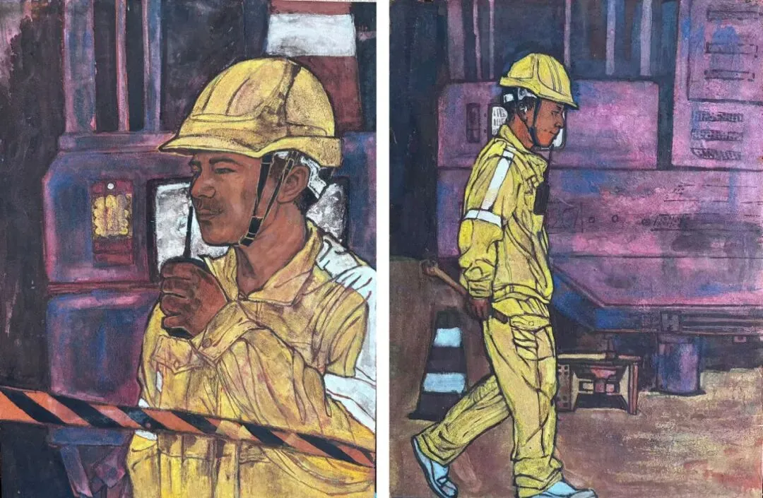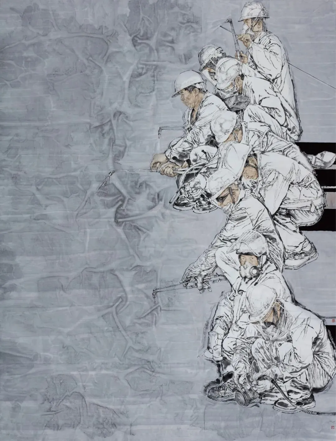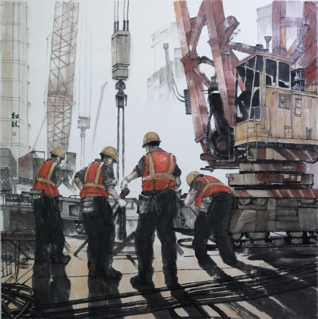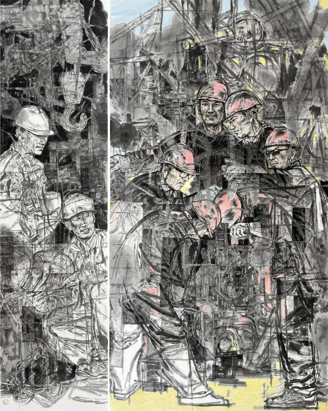 葛成根《船厂午后·巡检者的工业诗行》120×180cm