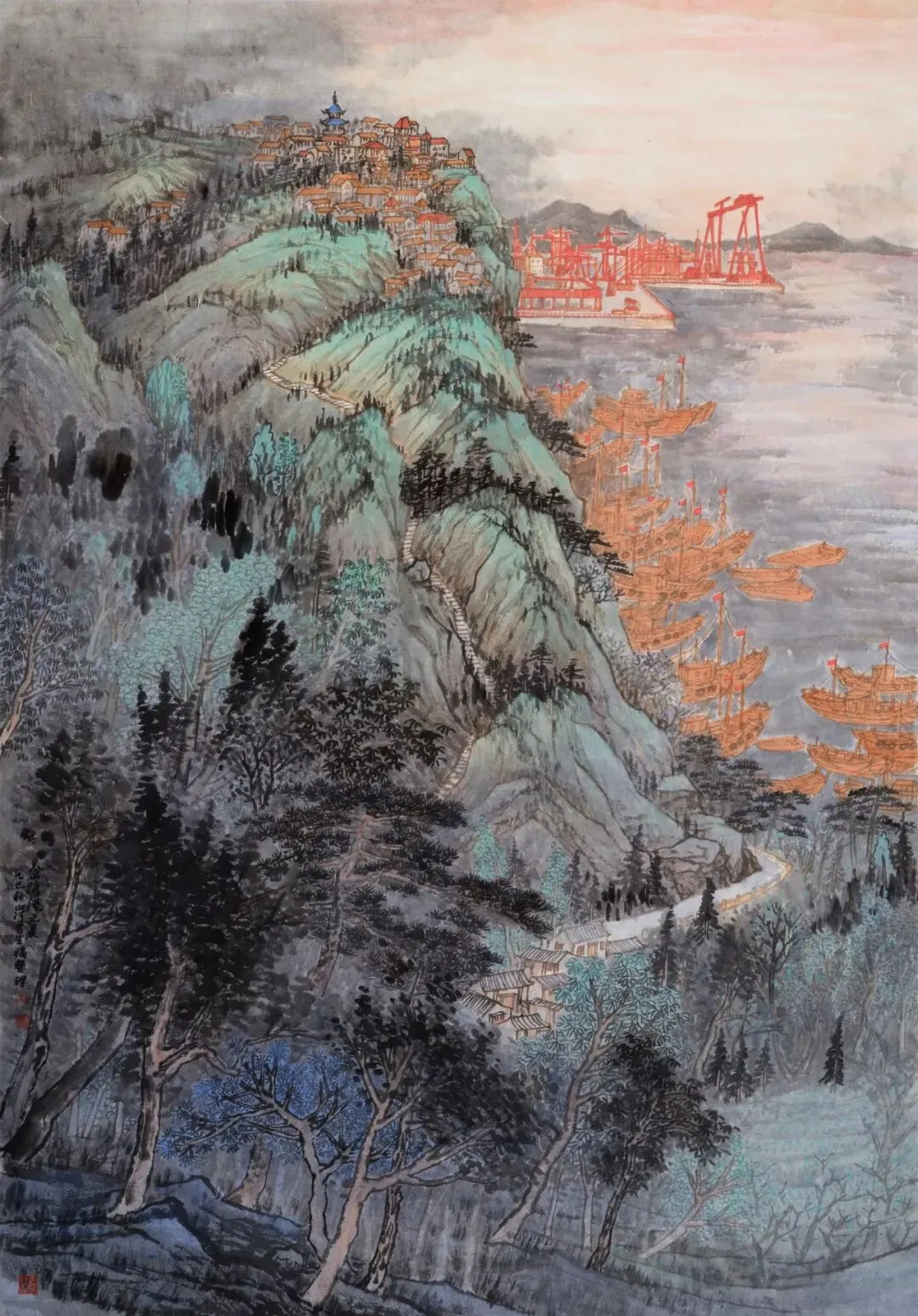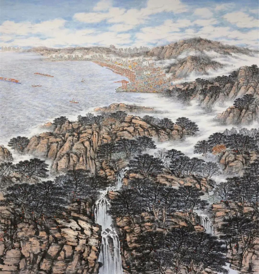 赵鹏飞、胡思良《青蓝海港》其二 105×150cm