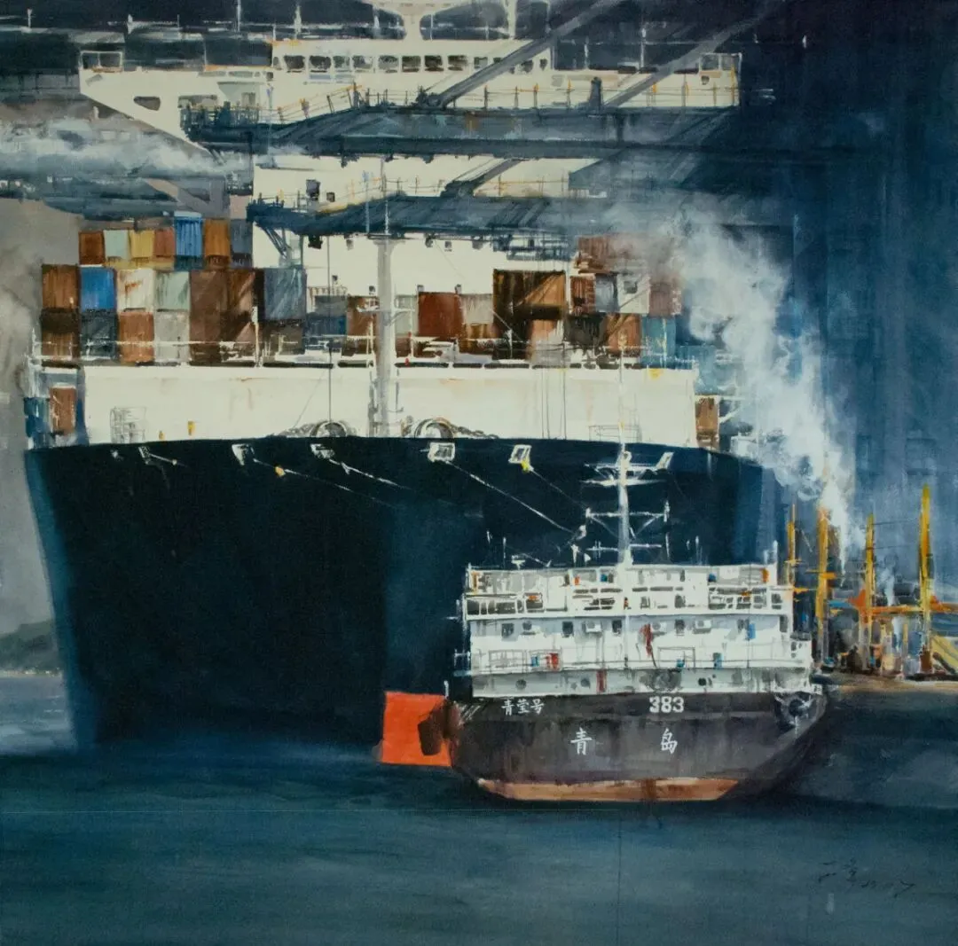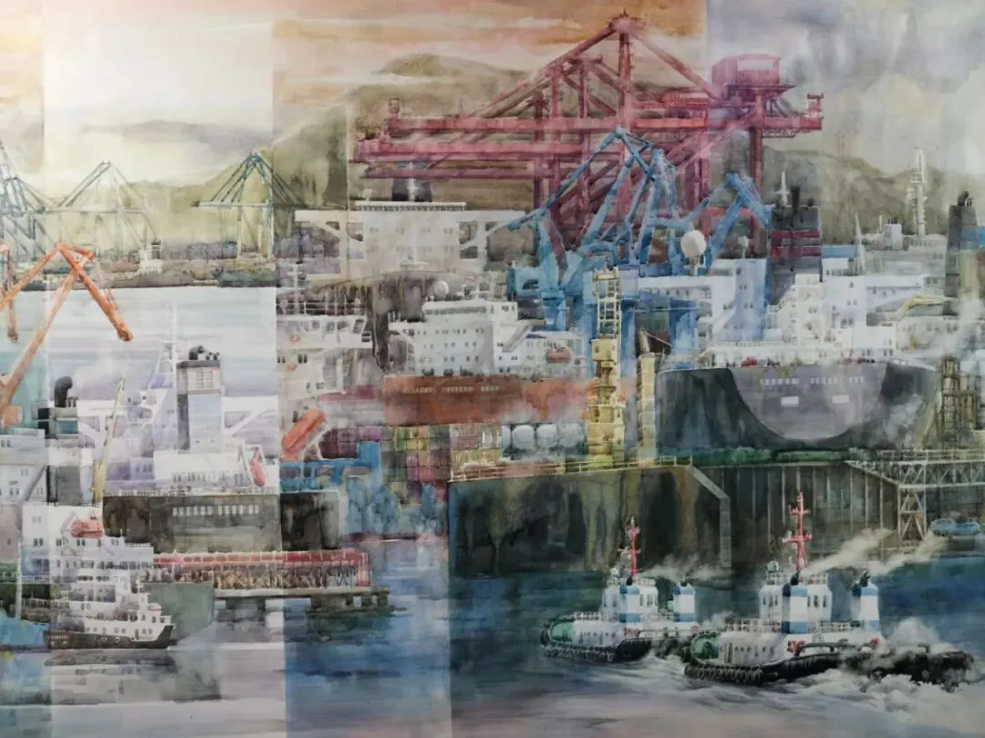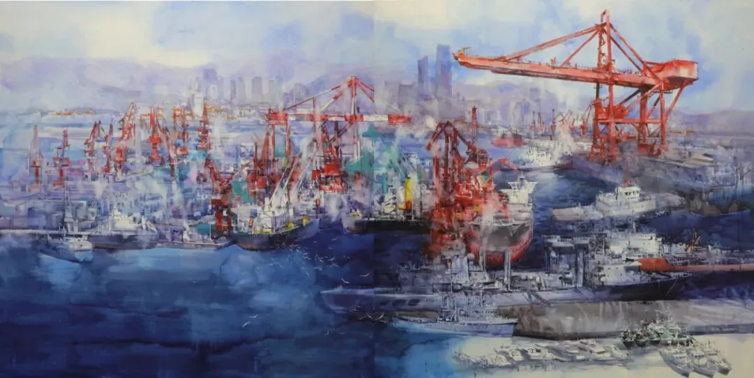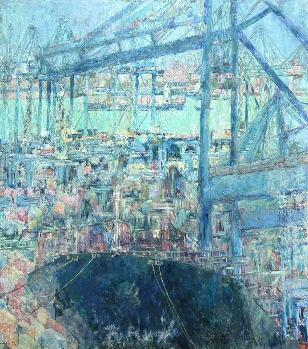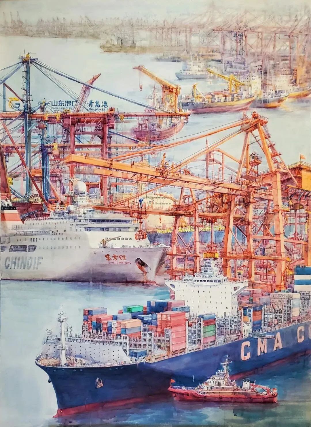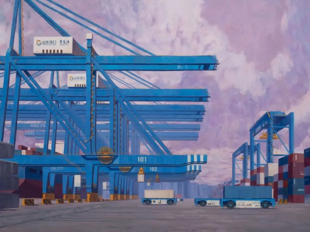 刘源、徐青巍《潮起大港—青岛自动化无人码头》 150×200cm