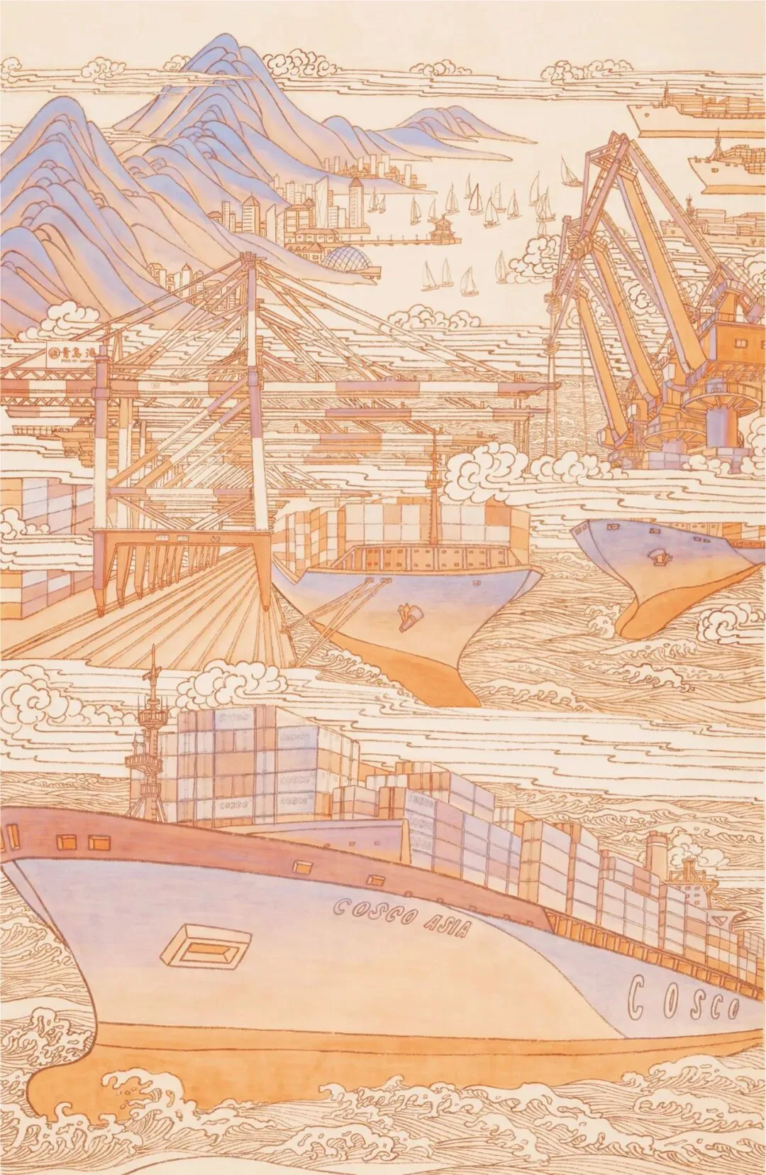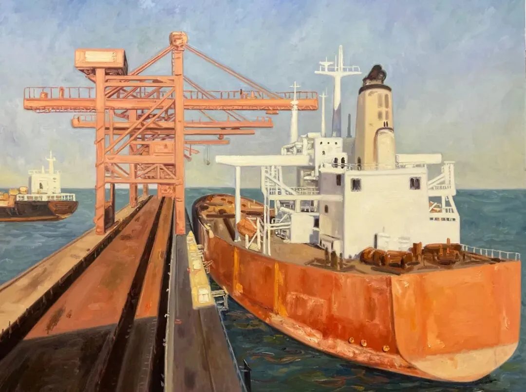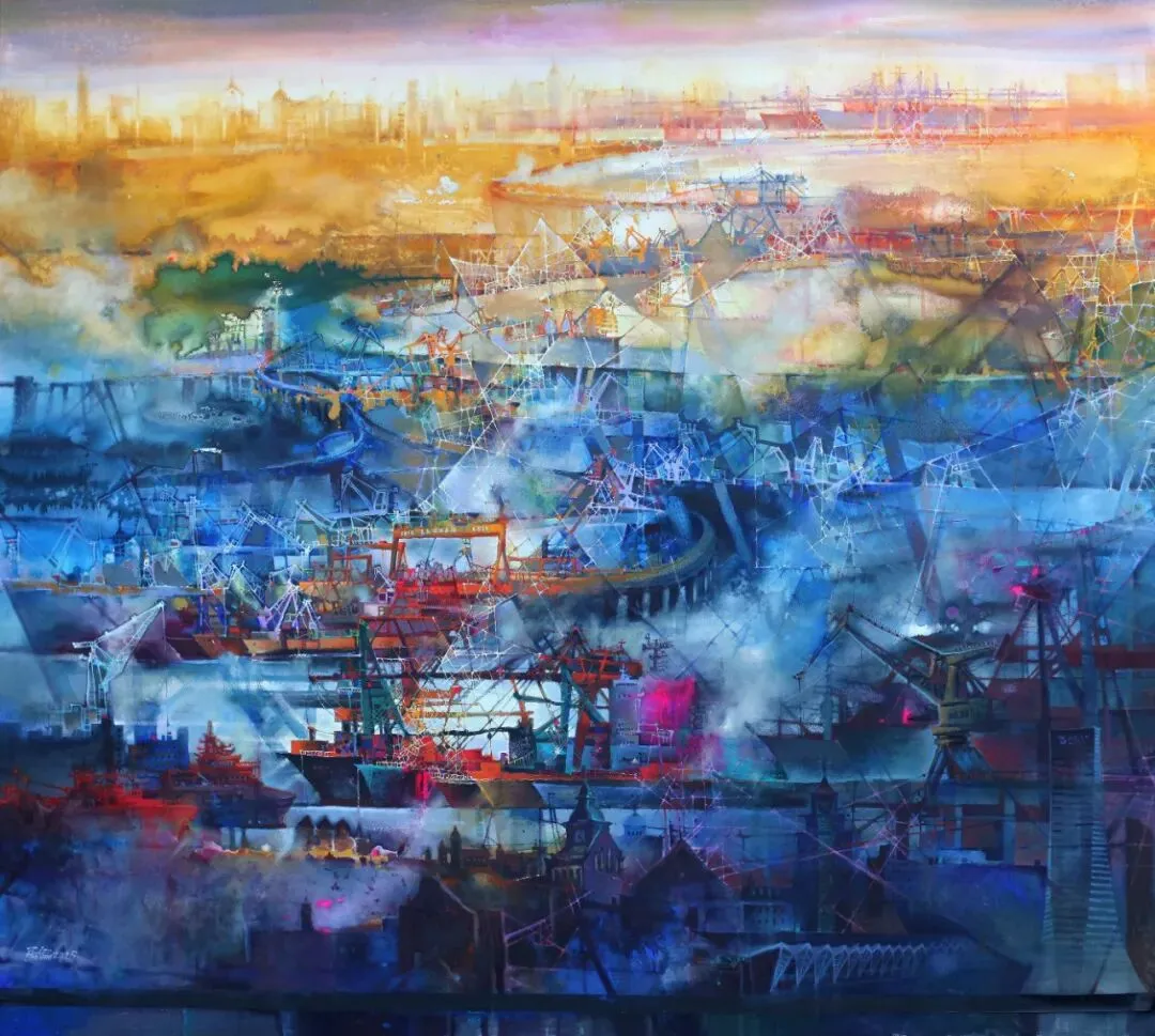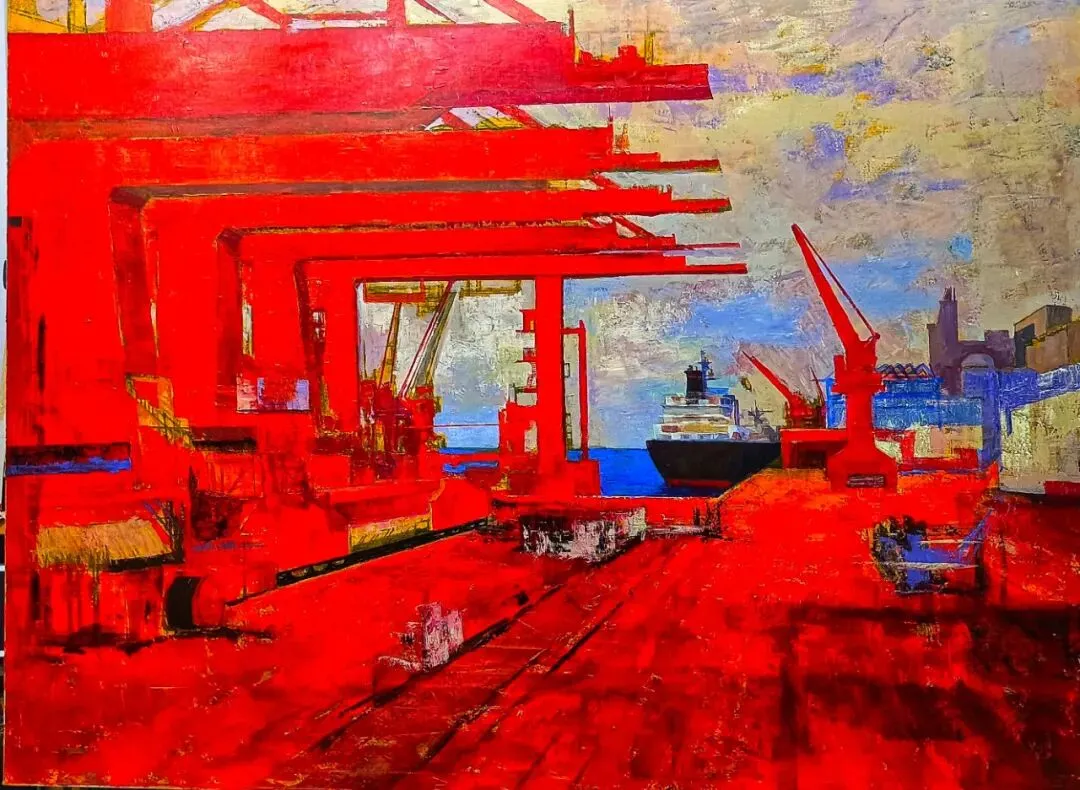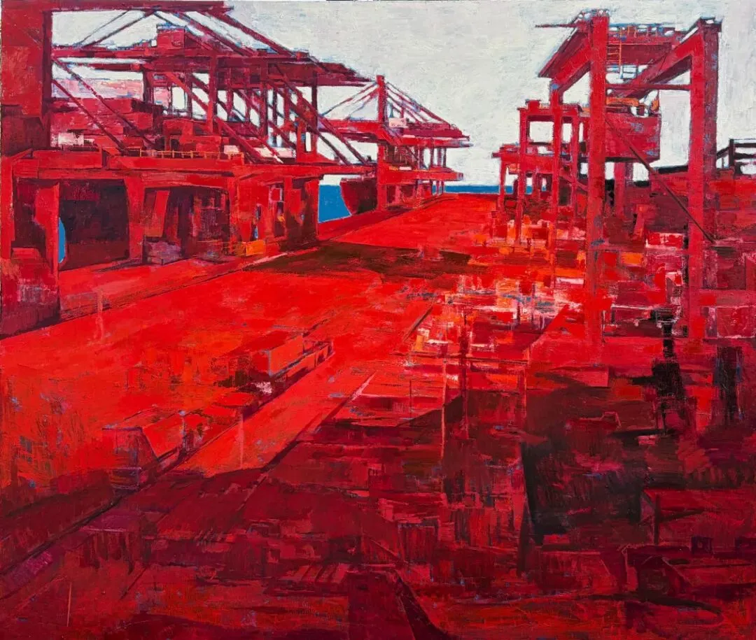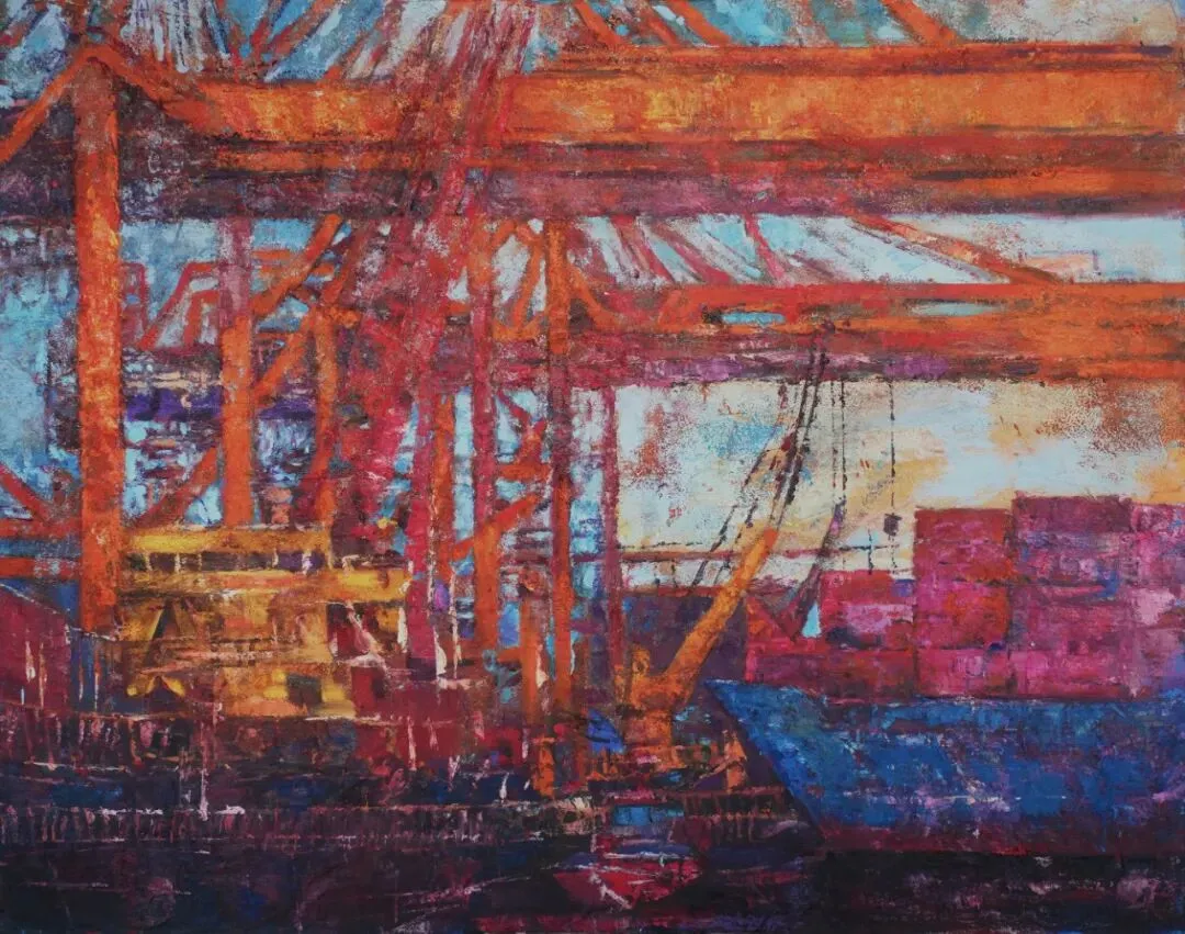 刘源、徐青巍《潮起大港—青岛自动化无人码头》 150×200cm