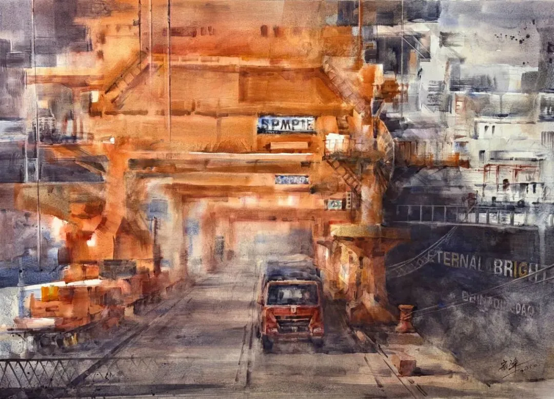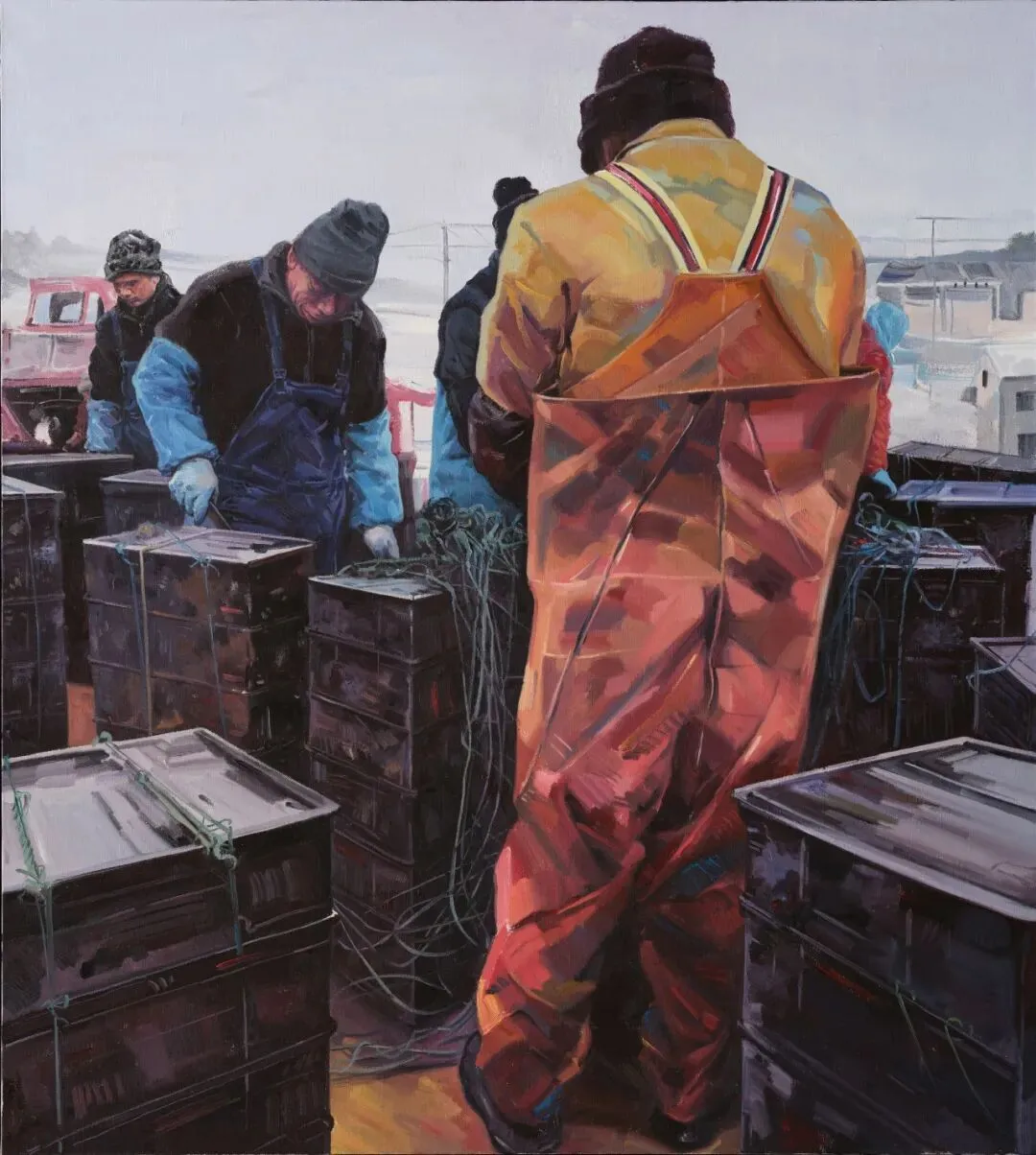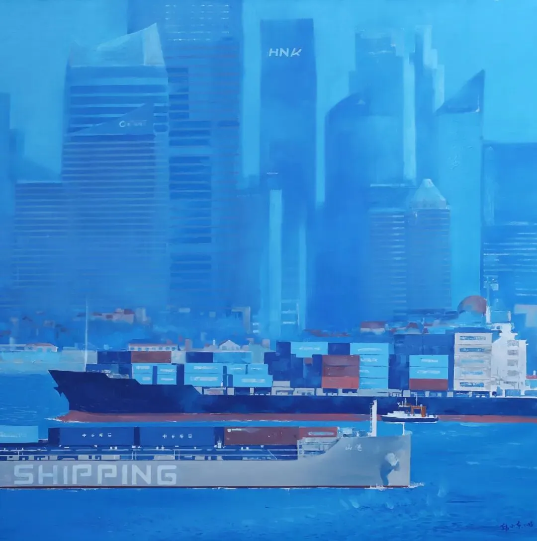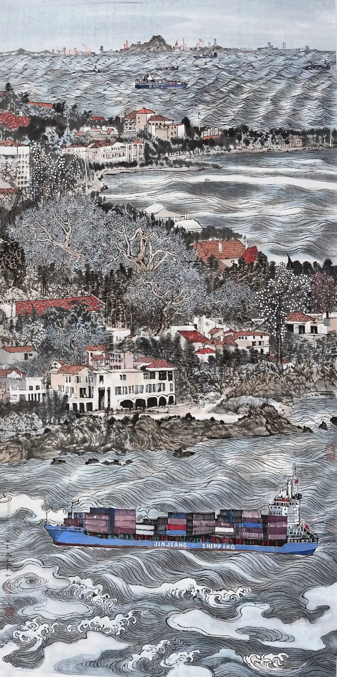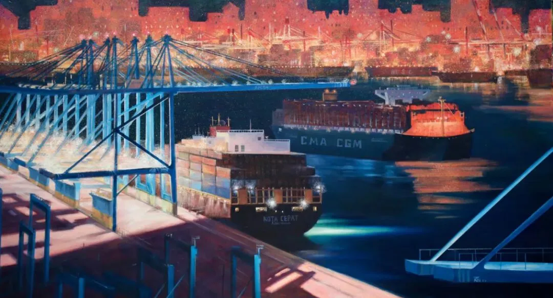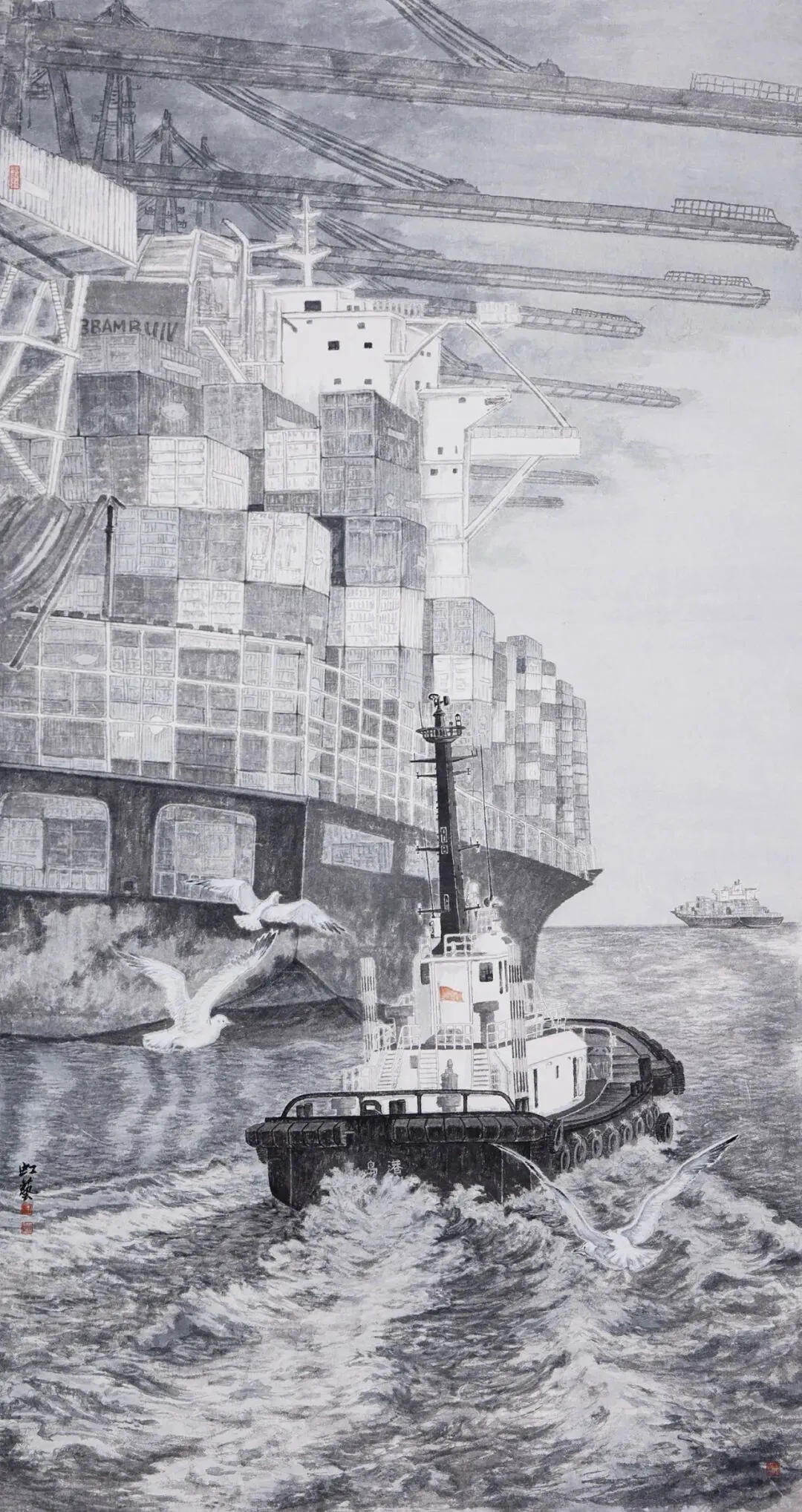 刘源、徐青巍《潮起大港—青岛自动化无人码头》 150×200cm