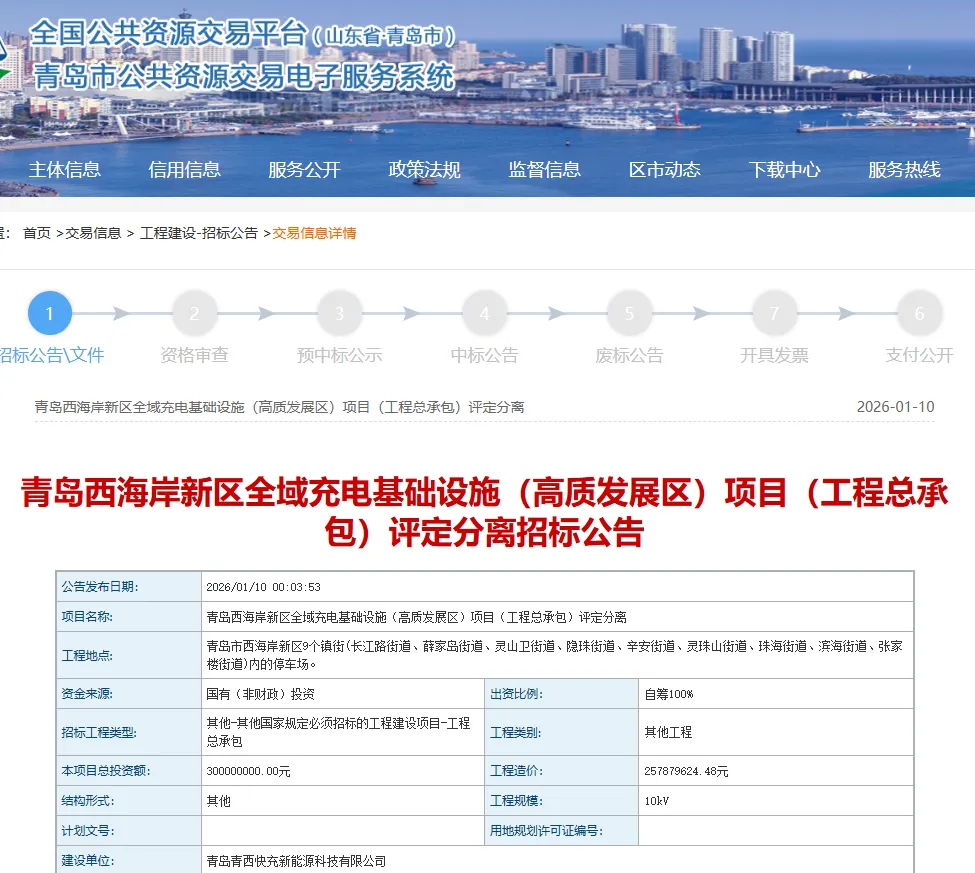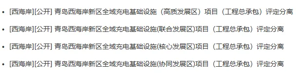 近日,青岛西海岸新区全域充电基础设施(高质发展区、联合发展区、核心发展区、协同发展区)项目(工程总承包)评定分离招标公告相继发布,四个项目总计投资额为18亿元。