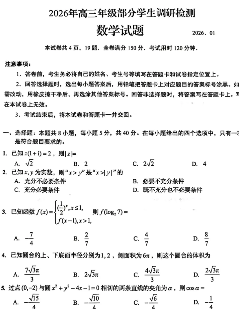 青岛市期末2026年1月高三部分学生调研检测及参考答案链接:https://pan.quark.cn/s/3502040e04fd
